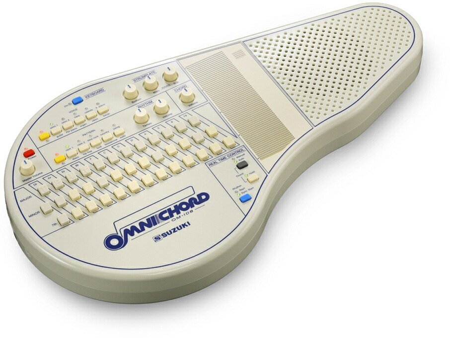 • オムニコードは、オートハープをフィーチャーした1981年発売のスズキオリジナル電子楽器です。誰でもどこでも楽しめる新しい楽器として特に欧米で人気を博しました。シリーズとしては、1996年発売のOM-300を最後に販売を終了しましたが、その後も人気は衰えず、2024年にOM-108として復刻にいたりました。