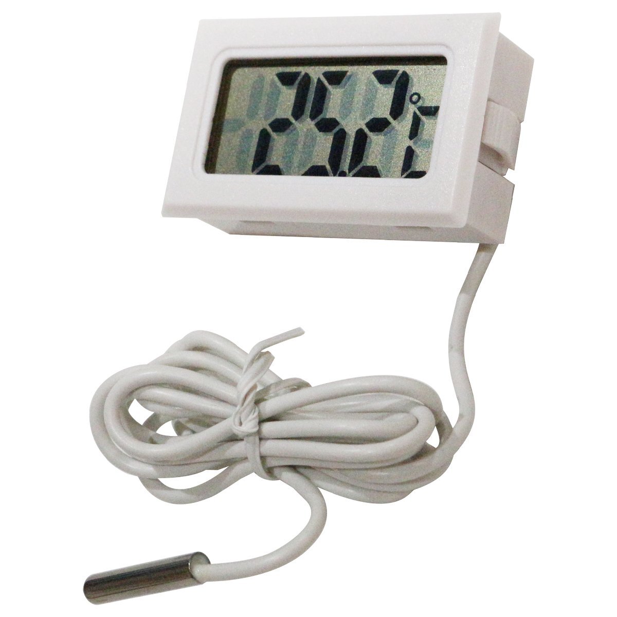 【送料220円】『水温系/温度計』デジタル式 熱帯魚 ミルク 冷蔵庫 室内 車内 水槽 タンク メダカ 金魚 ブローブ式センサー 配線長100cm 白