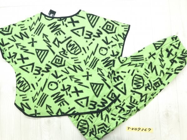 タグ付き新品!JOYFUL MAKINO レディース 幾何学柄 ルームウェア 上下セットアップ フリー 黄緑黒 です。