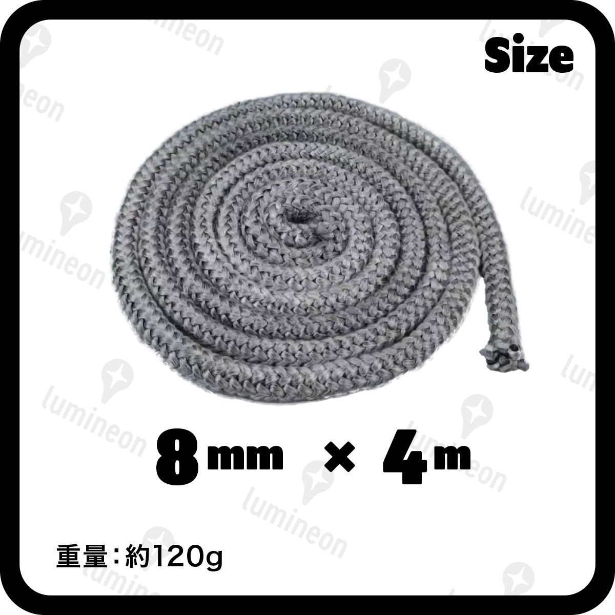 グラスファイバー ガスケット ロープ 8mm×4m ガラス繊維 薪 ストーブ アクセサリー 暖炉 気密性 メンテナンス ガラス 繊維 耐熱 g327d