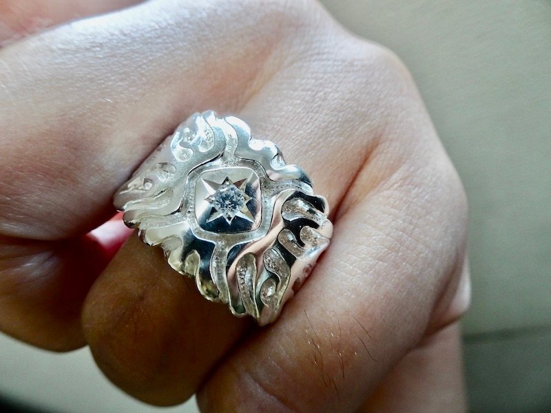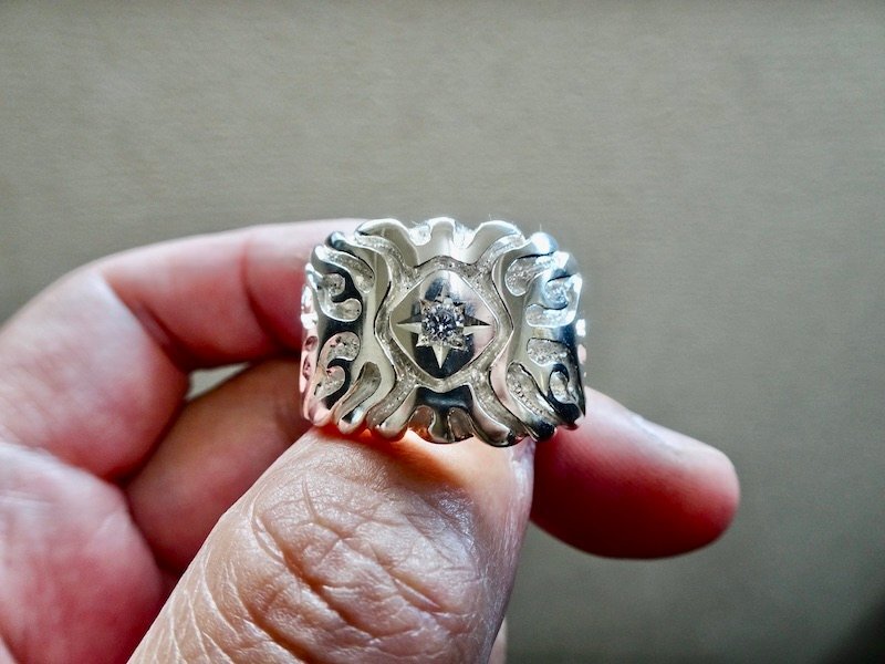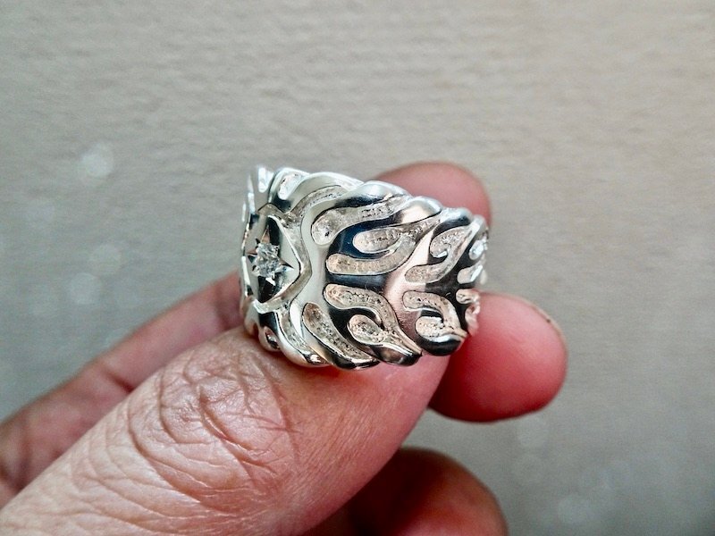 ごらん頂きありがとうございます。 オリジナルブランド 仁尾彫金『一つ星3mmダイヤ、ファイヤーパターン、リング』を出品致します。オリジナルのアクセサリーを自ら制作しています。今回、最大幅1.7cmのリングにファイヤーパターンのモチーフを表現したリングを制作致しました。 そこに今回、輝く一つ星をイメージして3ミリの上級クラス天然ダイヤを1石堀留しました。ダイヤは上級クラスなので無色透明で照り輝きは最高です!!最大厚みは5ミリ強と肉厚シルバーを約28gとボリュームもあります。シルバーなので使い込むと独特の味が出てきます!!デザイン制作を私自身で行っている為、今回、新品をご用意致します!! *こちらの作品につきまして13号から30号まで制作可能でございます。m(_ _)m シルバー925 約28g(silver刻印あり) ご質問等ございましたらお気軽にaerothmith@mac.comへご連絡下さい。m(_ _)m インスタにて仁尾彫金で制作状況を掲載していますのでお気軽にご登録をお願い致します。(^-^) 金プラチナにつきましてはフルオーダー制作も承っていますので、ご質問等ございましたらお気軽にaerothmith@mac.comへご連絡下さい。m(_ _)m 右上のストアニュースレター配信登録して頂きましたら新作出品時にニュースレターを配信していますので宜しくお願い致します。m(_ _)m その他も出品していますのでご覧下さい。m(_ _)m |