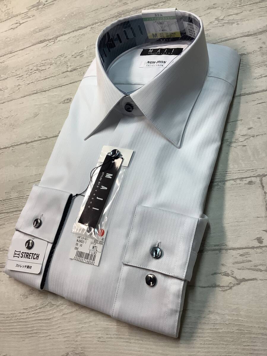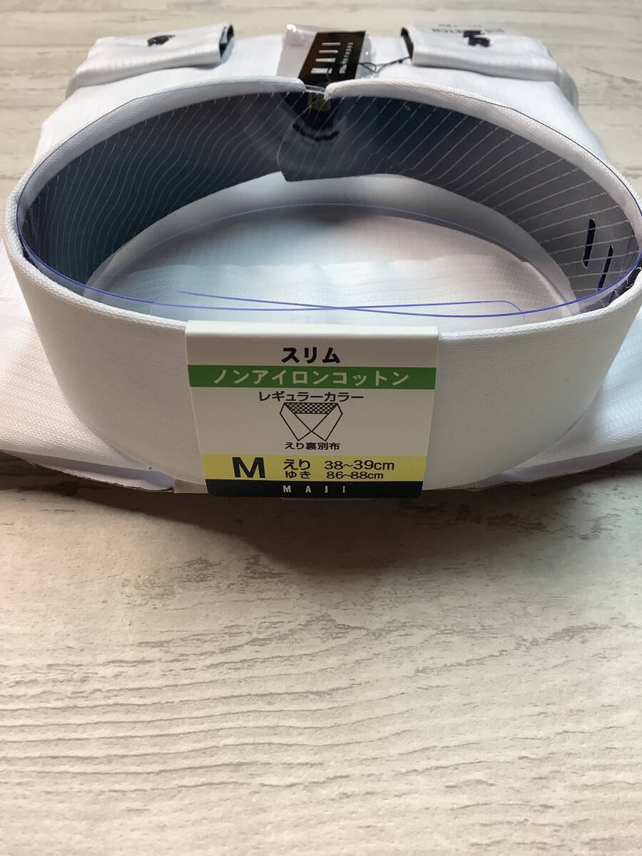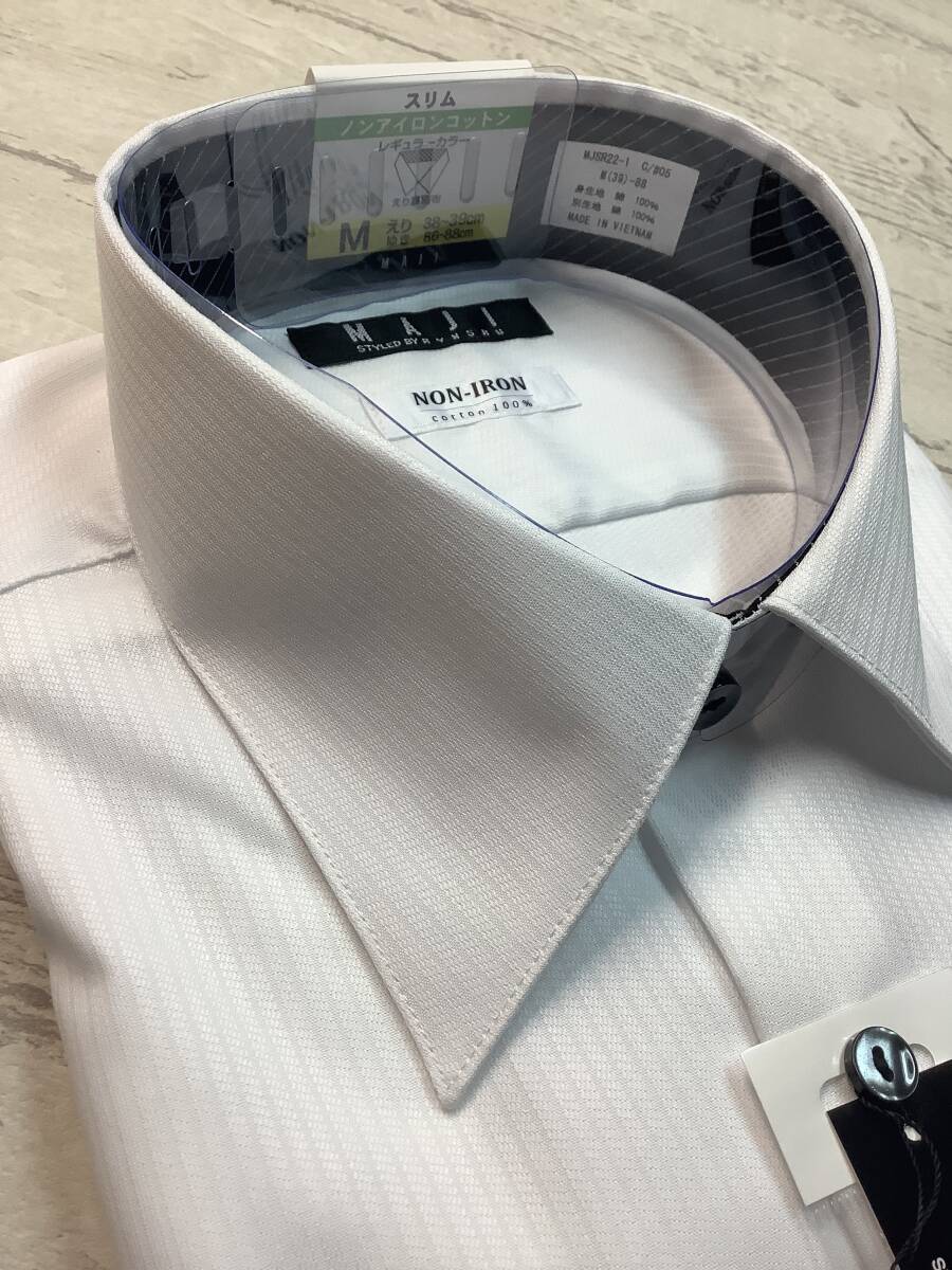 新品 39-88 長袖Mサイズ レギュラーカラー ドレスシャツ ★ノンアイロン綿100% ★細かい白ストライプドビー柄