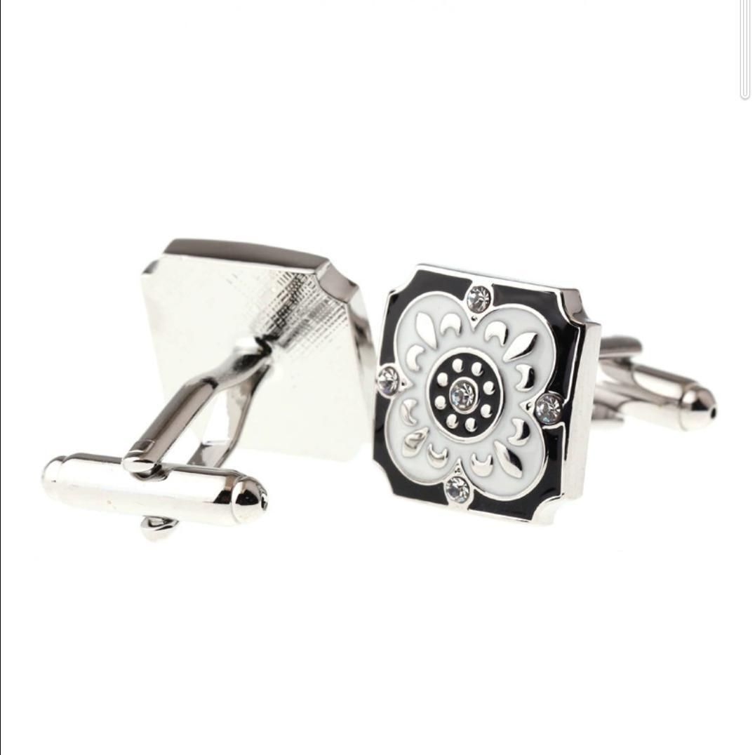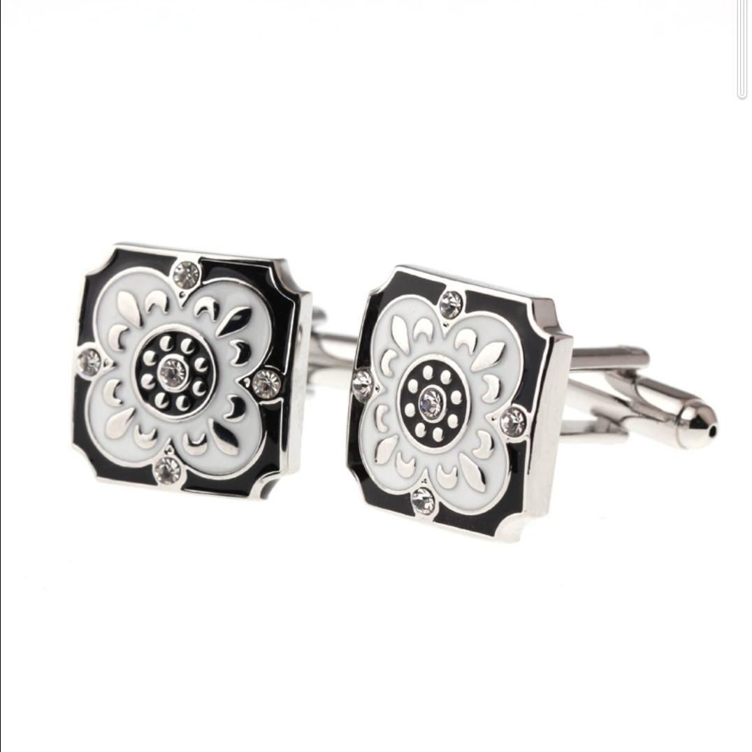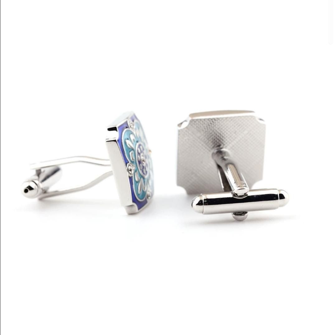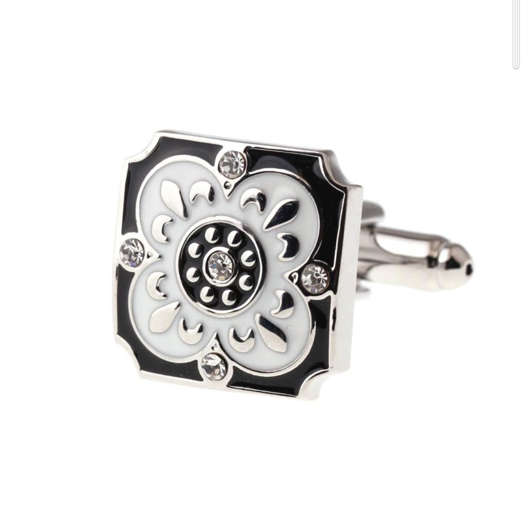 メンズ カフスボタン おしゃれ シルバー ブルー 柄 スクエア柄 星型 スクエアカフスボタン 和柄 小紋柄 ビジネススーツ 紳士用 ステンレス アンティーク 和風 カフス スクエア 白x黒 花 レトロ風 カフリンクス シルバー アクセサリー 878