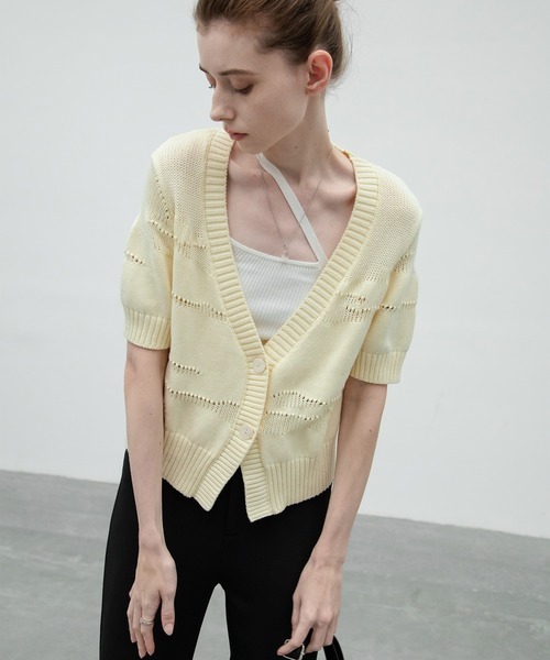 参考商品名:【 EKCOOKIES 】クロップド丈ジャガードサマーニットカーデ