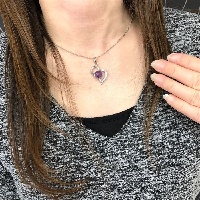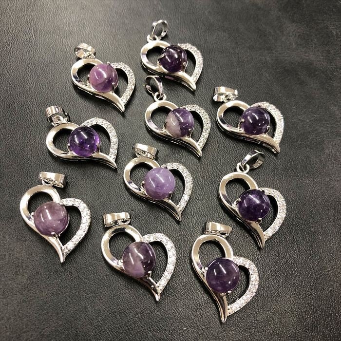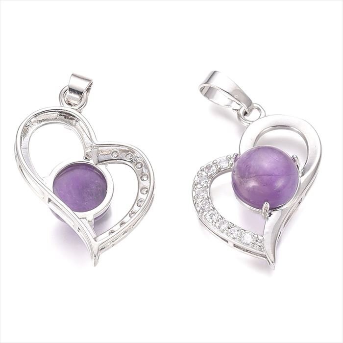 【STONE KITCHEN 天然石 パワーストーン】 ☆綺麗な天然石ときらきらラインストーンであしらった素敵なデザイン☆ とっても可愛いハートのペンダントが入荷しました♪ 上品かつ優雅な印象のデザインで胸元を素敵に演出してくれます。! アメジストは恋人や家族など 大切な人との絆を深め愛を育む強さを与えてくれるでしょう。 異性との出会いを求める人やパートナーとの絆を深めたい人 見た目に惑わされて失敗しがちな人にもオススメです。 【サイズ】約29mm×約21.5mm 厚み:約9mm 穴:約7mm×約3.5mm(バチカン除く) 【材質】アメジスト・真鍮製 1点 注意事項 ※こちらの商品は画像と同等クラスからランダムにご用意させて頂きます。 ※表示のサイズは必ずしも最大値・最小値のサイズのものが入っているわけではございません。 ※天然石のため同じものでも色味・模様などが異なります。 ※照明の具合で実際とは色合いが異なる場合がございます。 また、天然素材特有のクラック・内包物を有する場合がございます。予めご了承下さい。 | |
