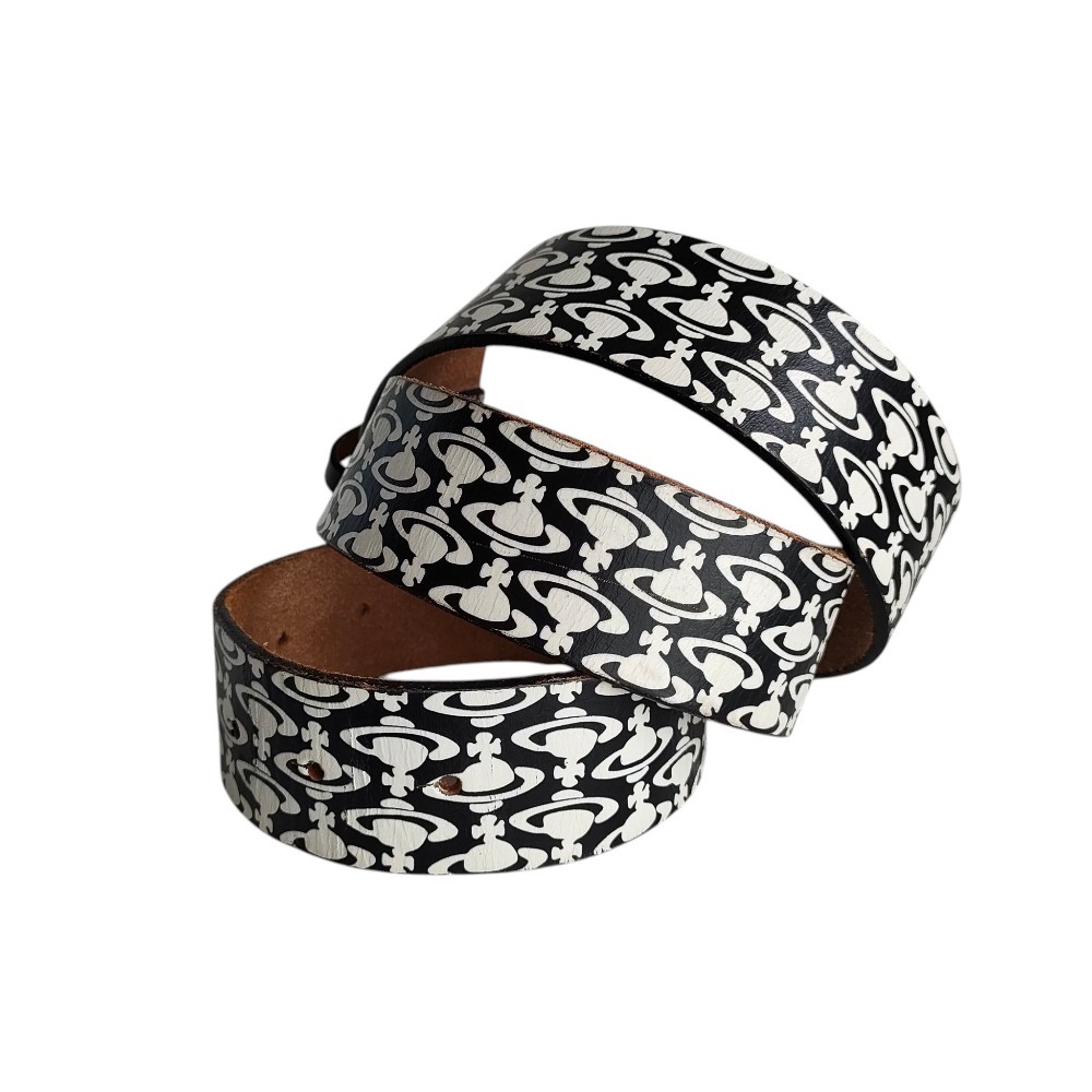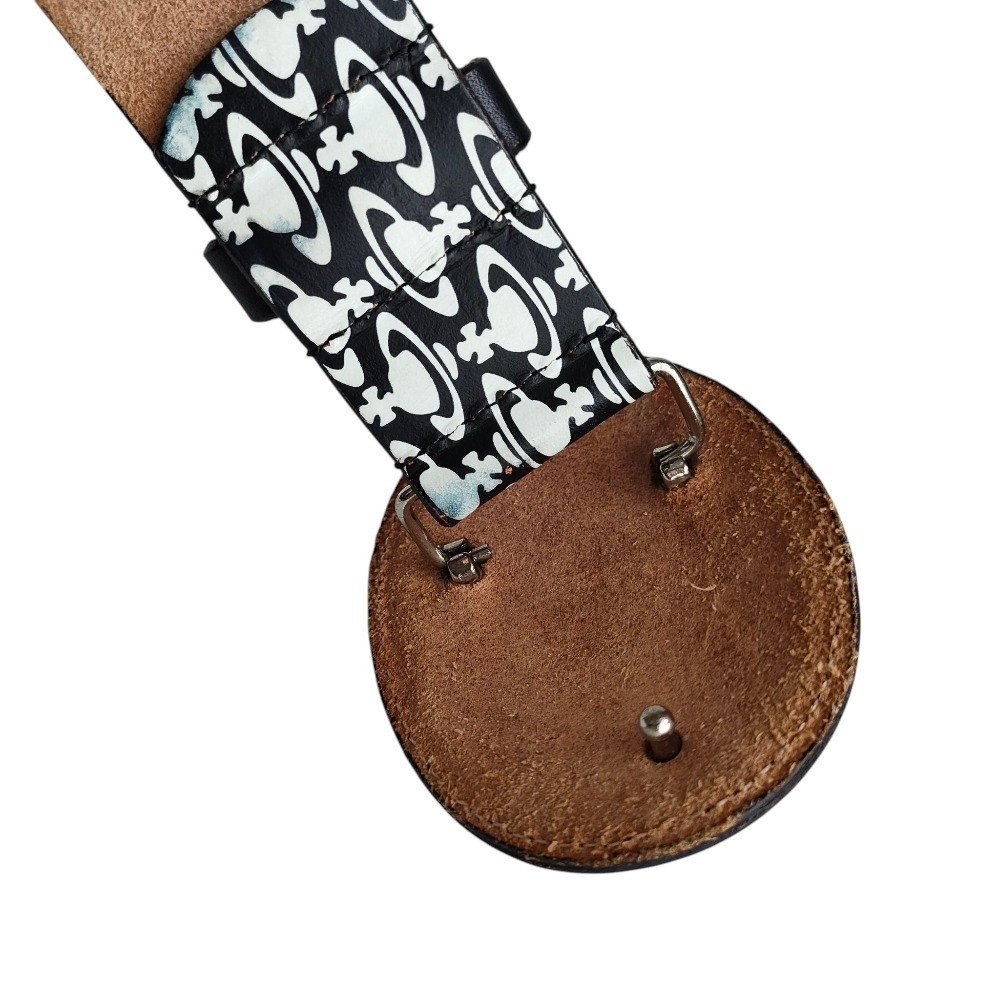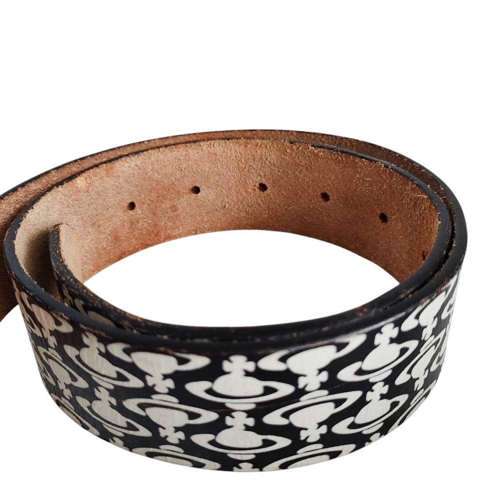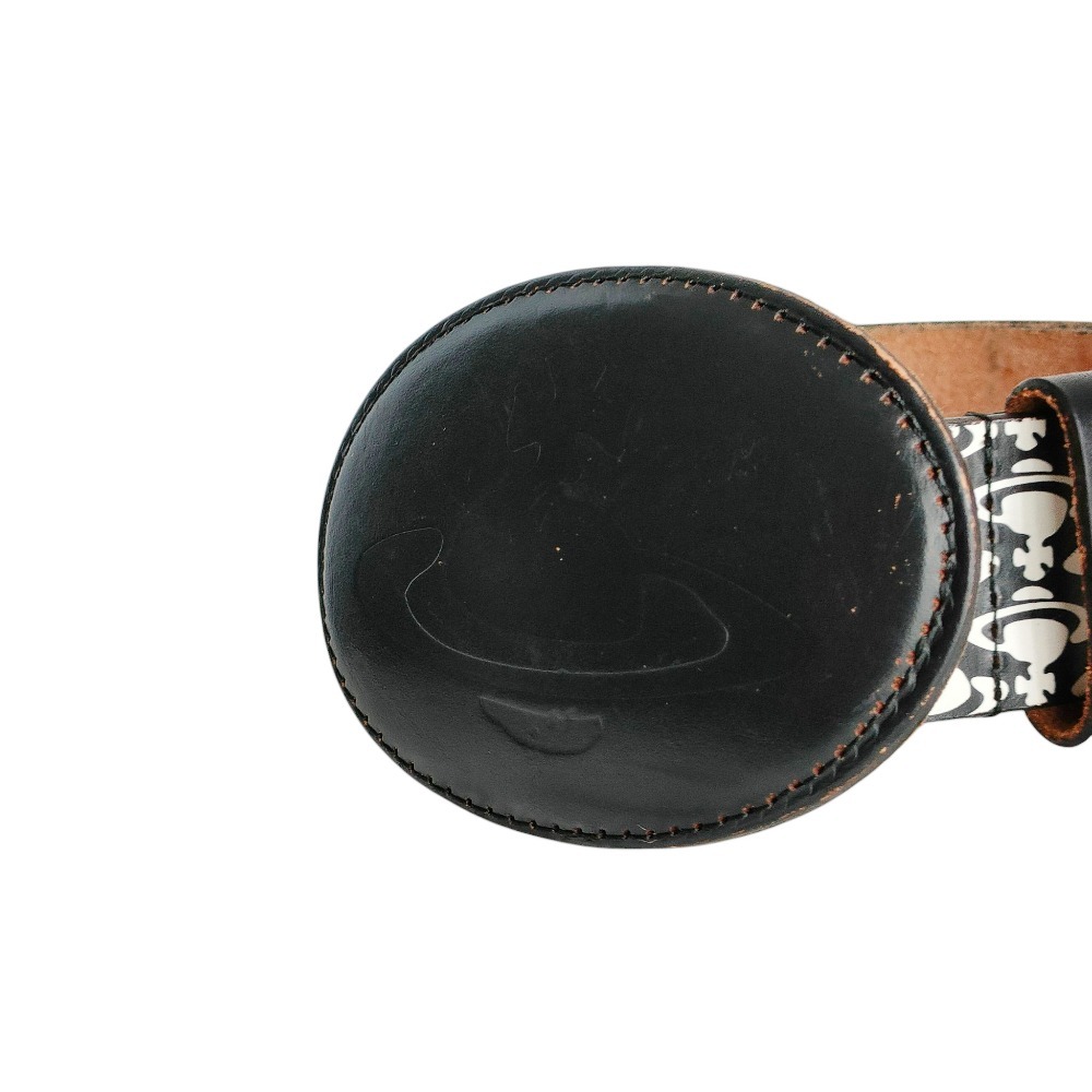 良品 Vivienne Westwood ヴィヴィアンウエストウッド オーブプリント レザーベルト ブラック×ホワイト