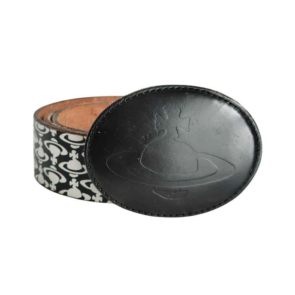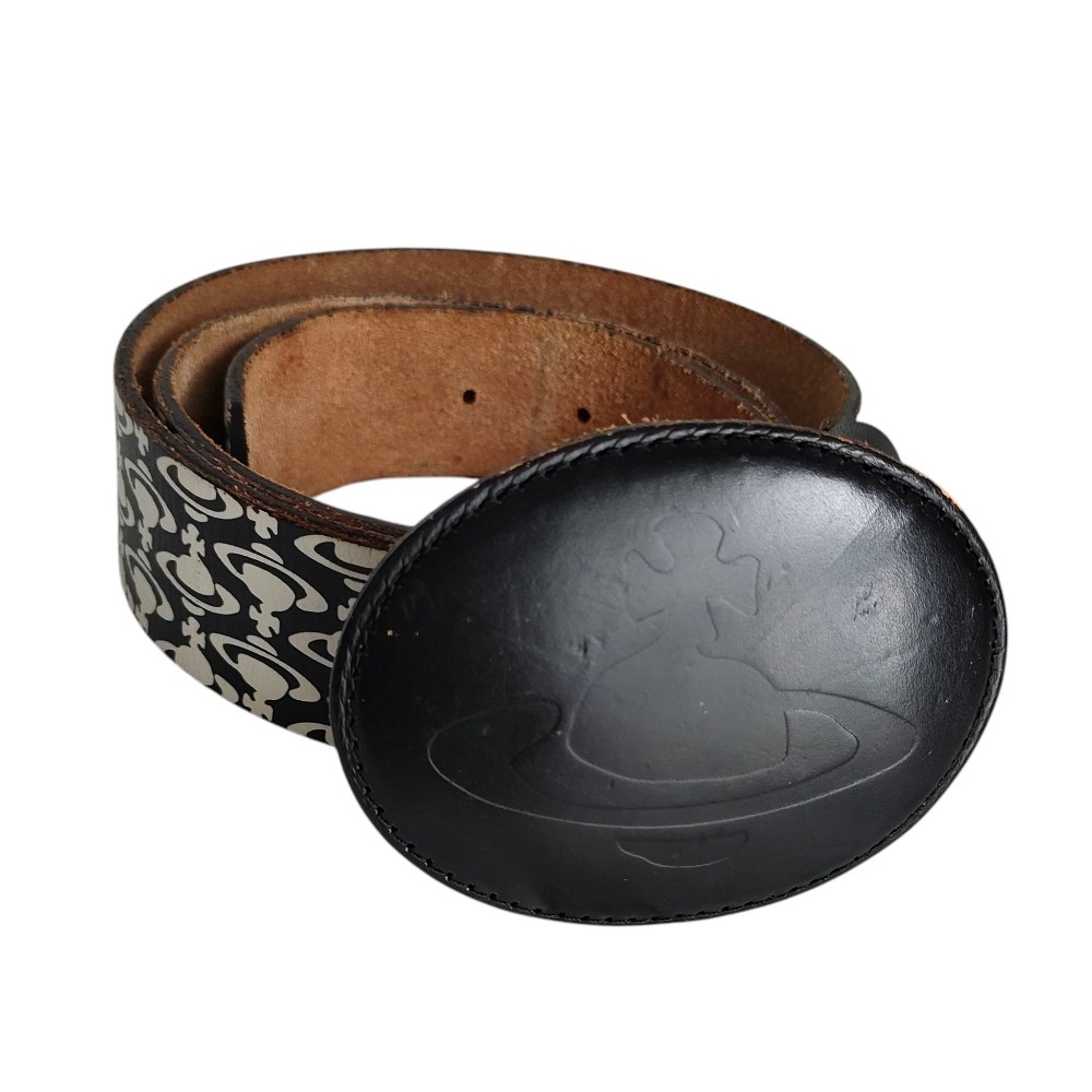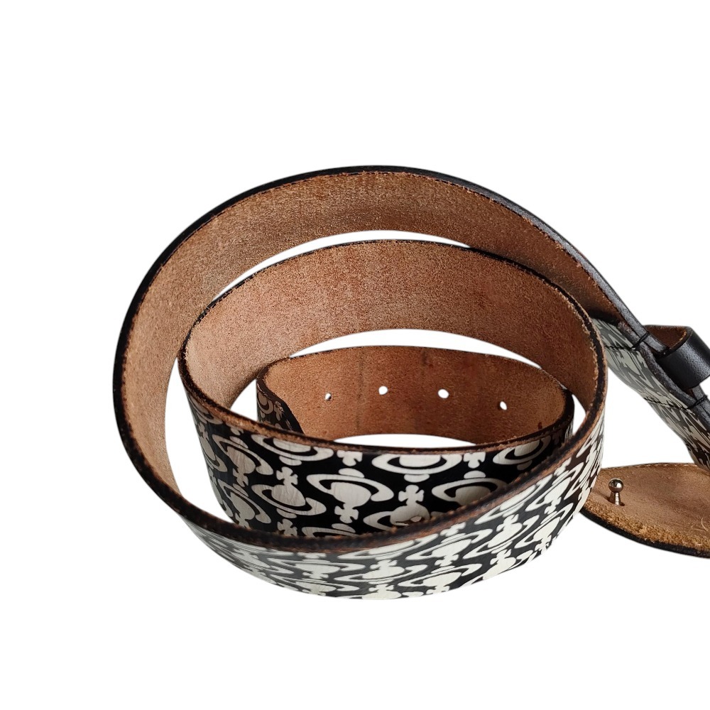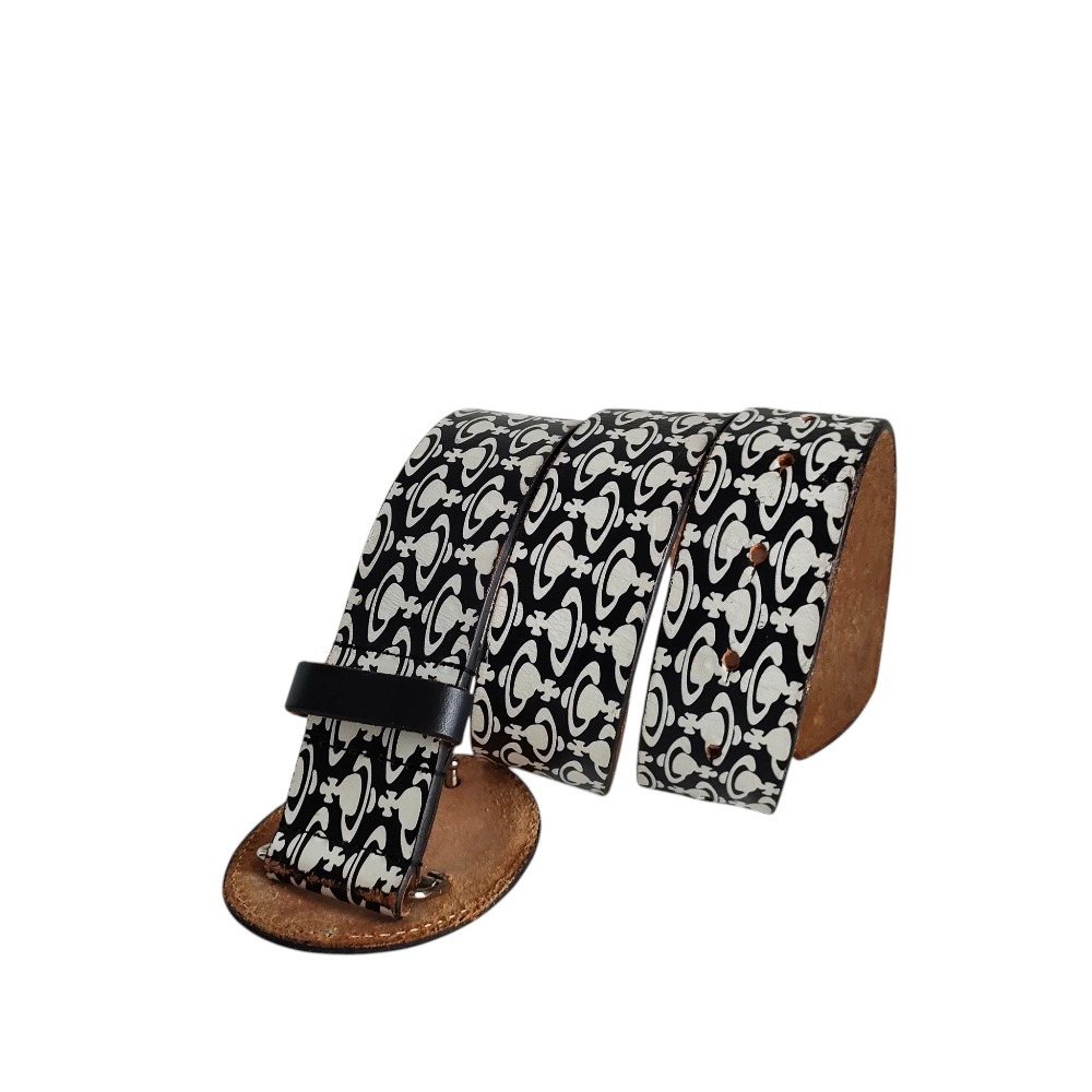 良品 Vivienne Westwood ヴィヴィアンウエストウッド オーブプリント レザーベルト ブラック×ホワイト