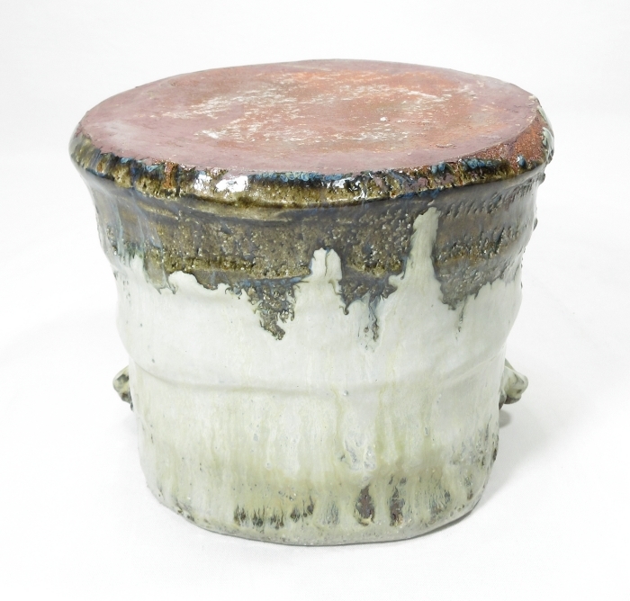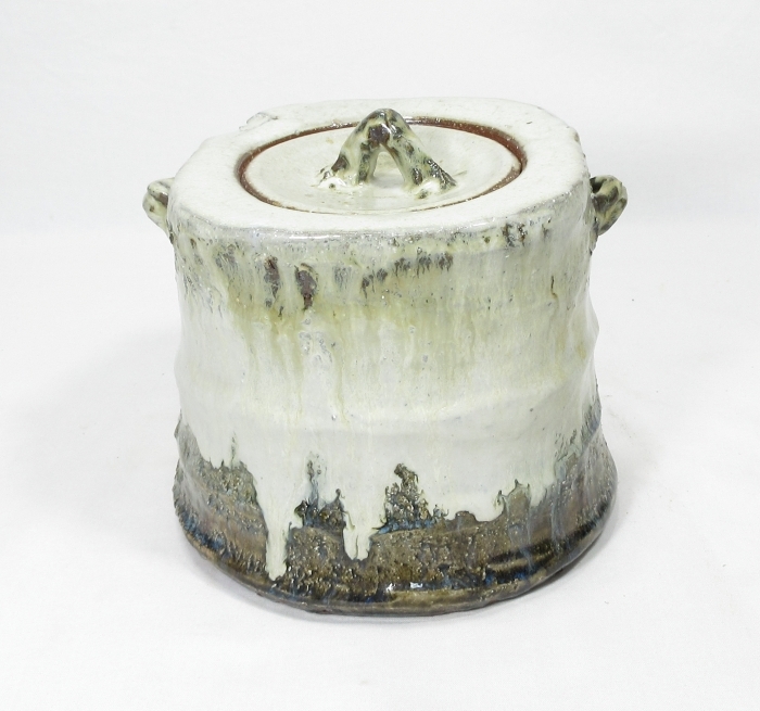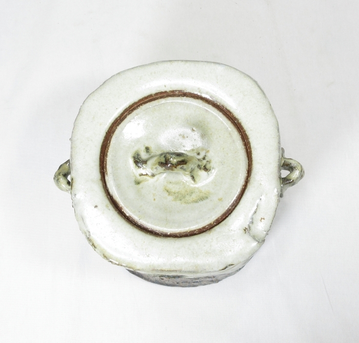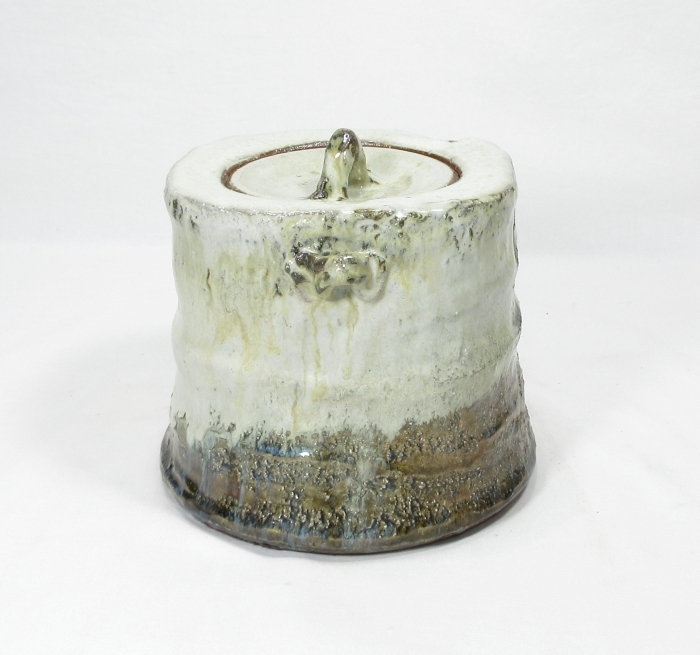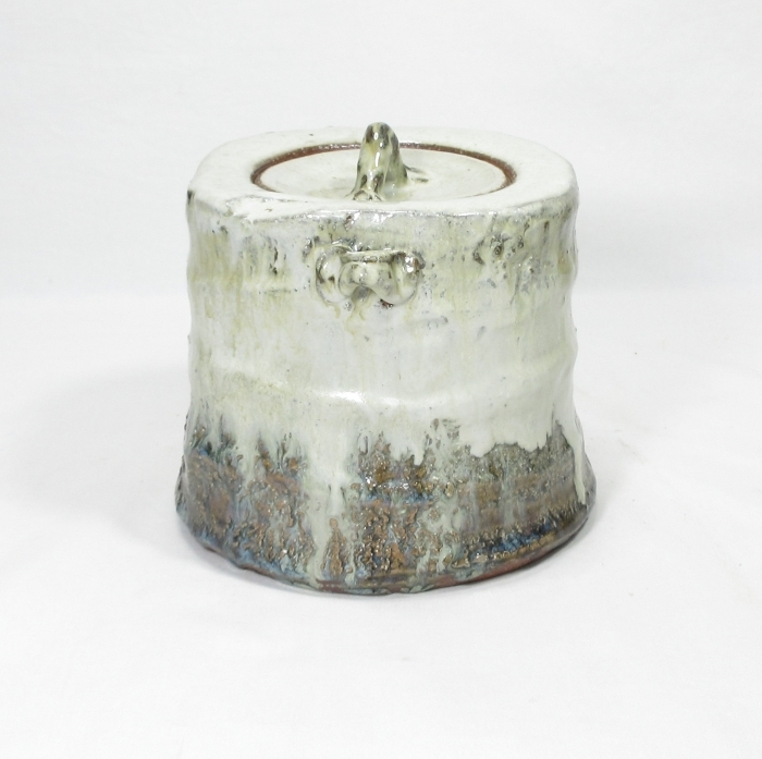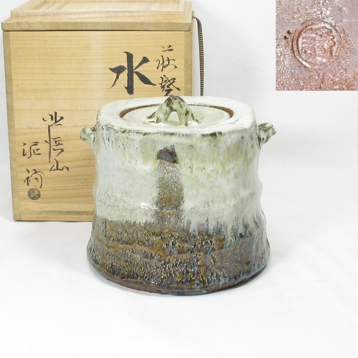 【B0821】茶道具 萩焼 北浜山 御台場窯 名工【 渋谷 泥詩 】作 良作! 朝鮮唐津釉 水指 真作保証 四方桟 共箱 即決