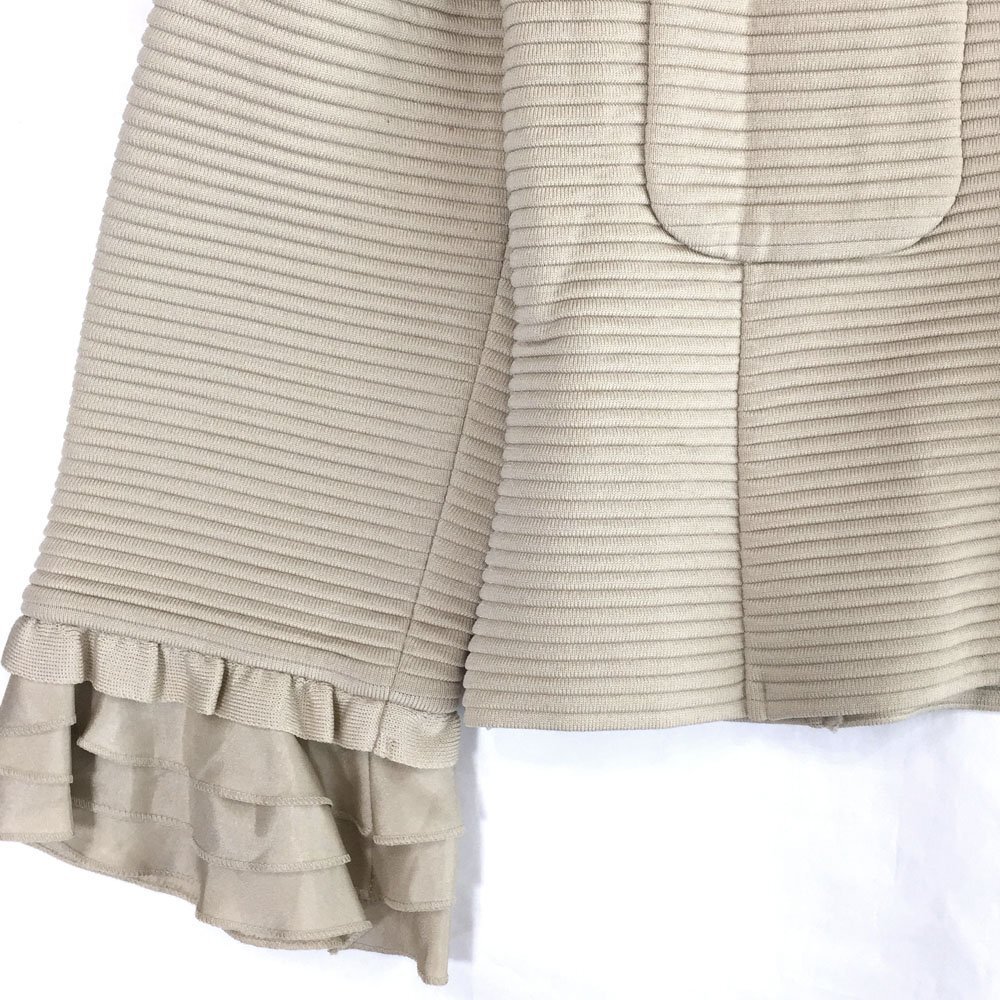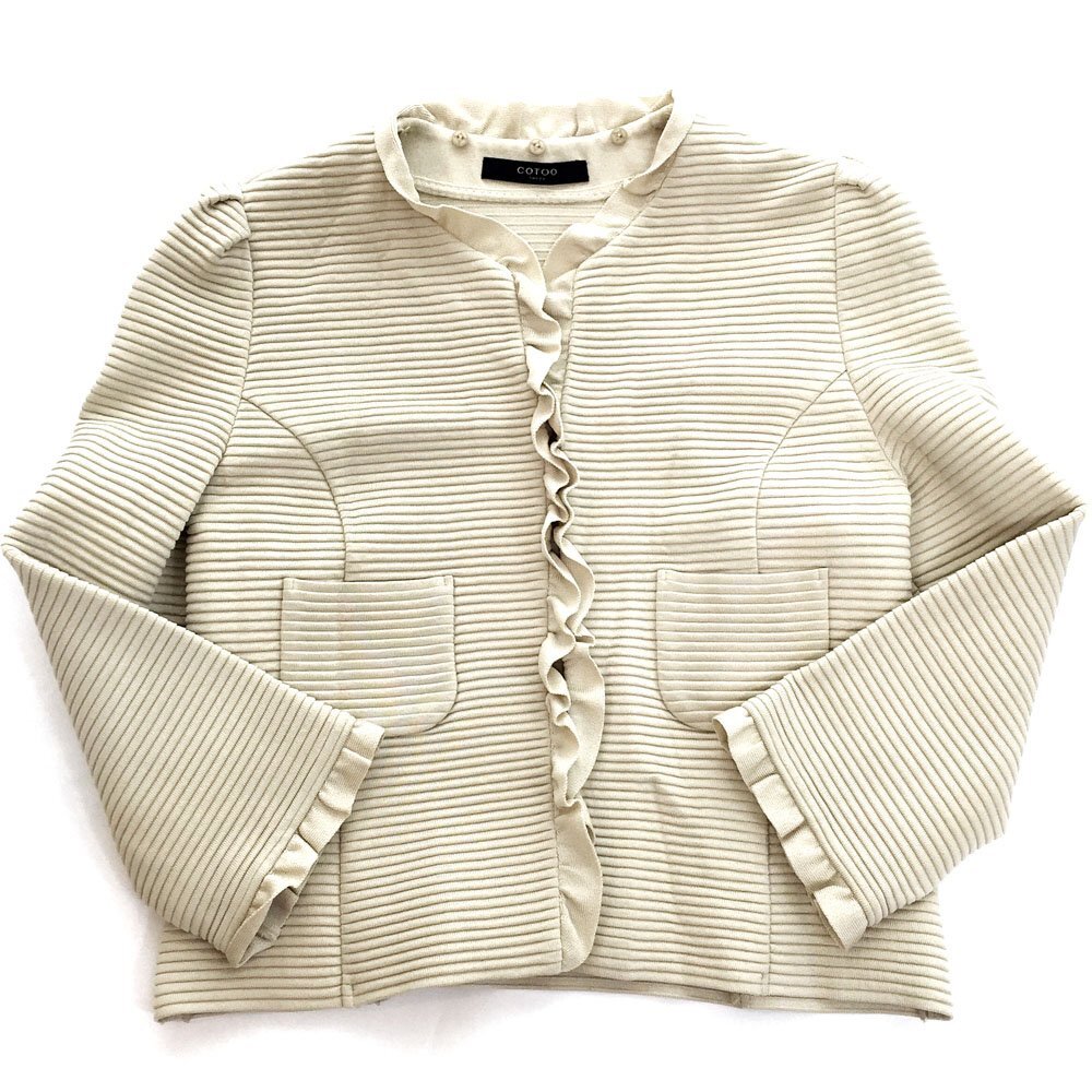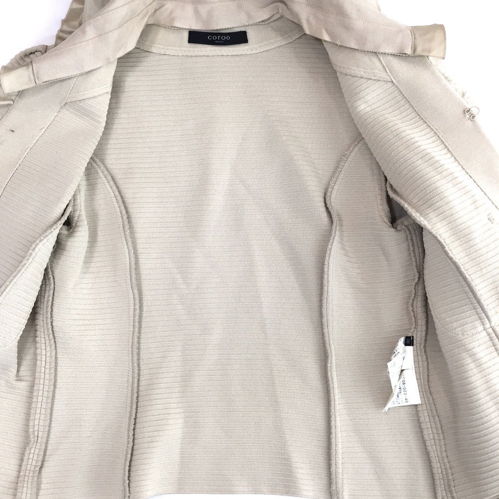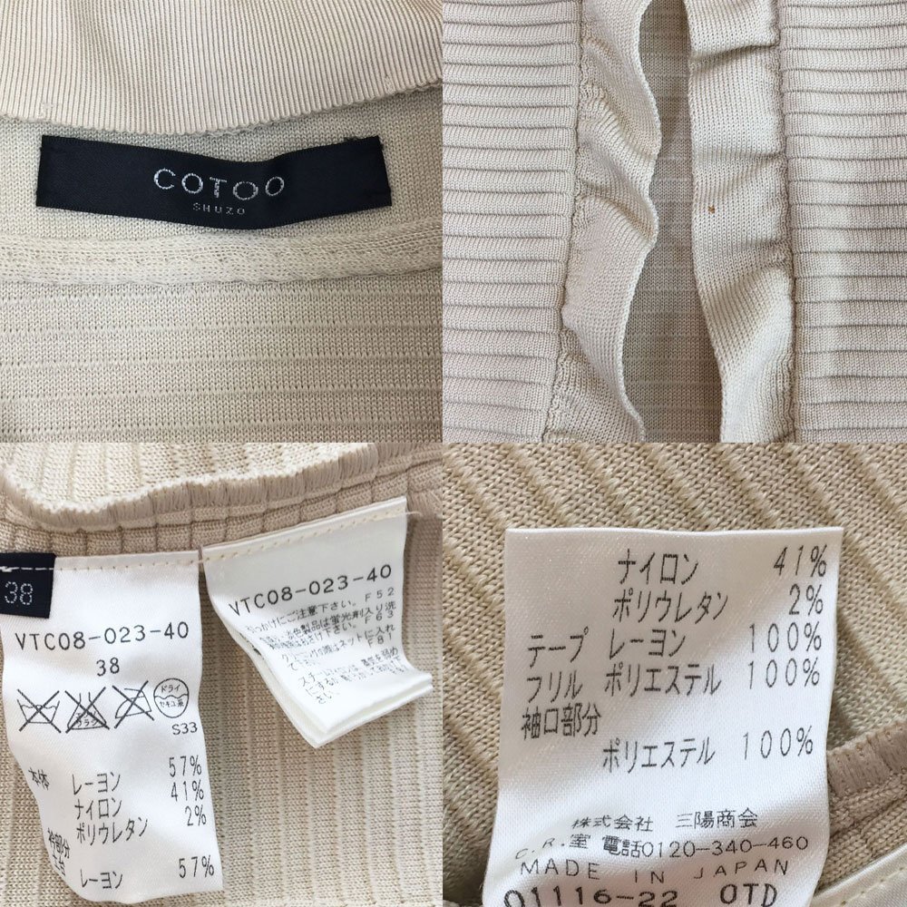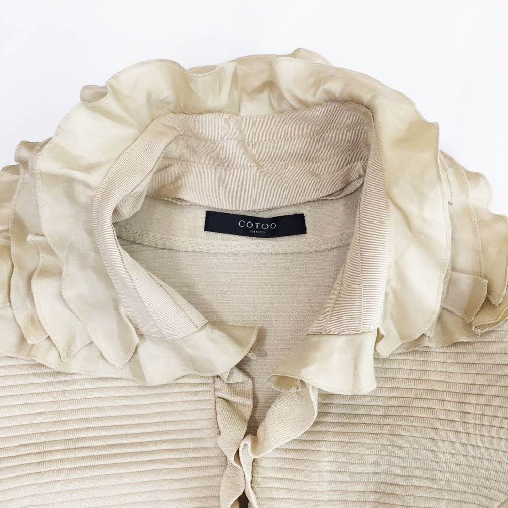 コメント | コトゥーは、ハロッズなどのデザイナーを歴任した林秀三が、2007年に発表した日本のブランドです。株式会社三陽商会の取り扱いです。 衿とお袖のフリルは取り外して着用できるニットジャケットです。フリルを取り外すとベーシックなノーカラージャケットとして着ることができます。人を会う様々なシーンで活躍する逸品です。 状態はUSEDです。フロント中央に1mmほど(写真7)、前合わせの内側に1cmの小さな汚れ(写真6)、細かい汚れ(写真3)があります。シワ、使用感はありますが、これからも十分活躍します。ご理解のある方の入札をお待ちしております。 |