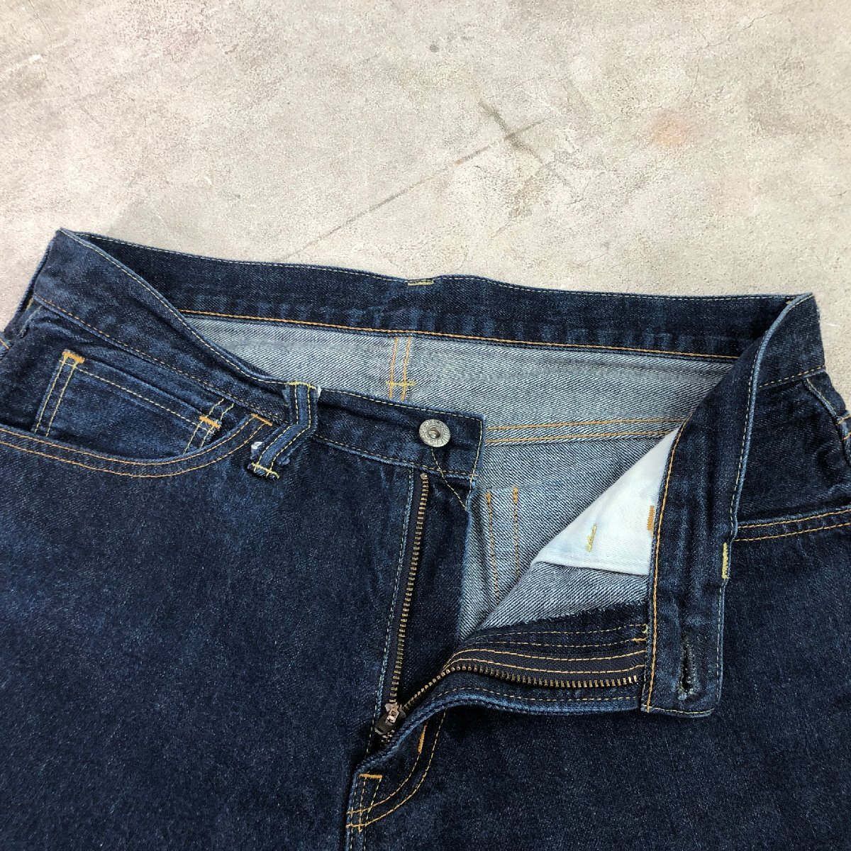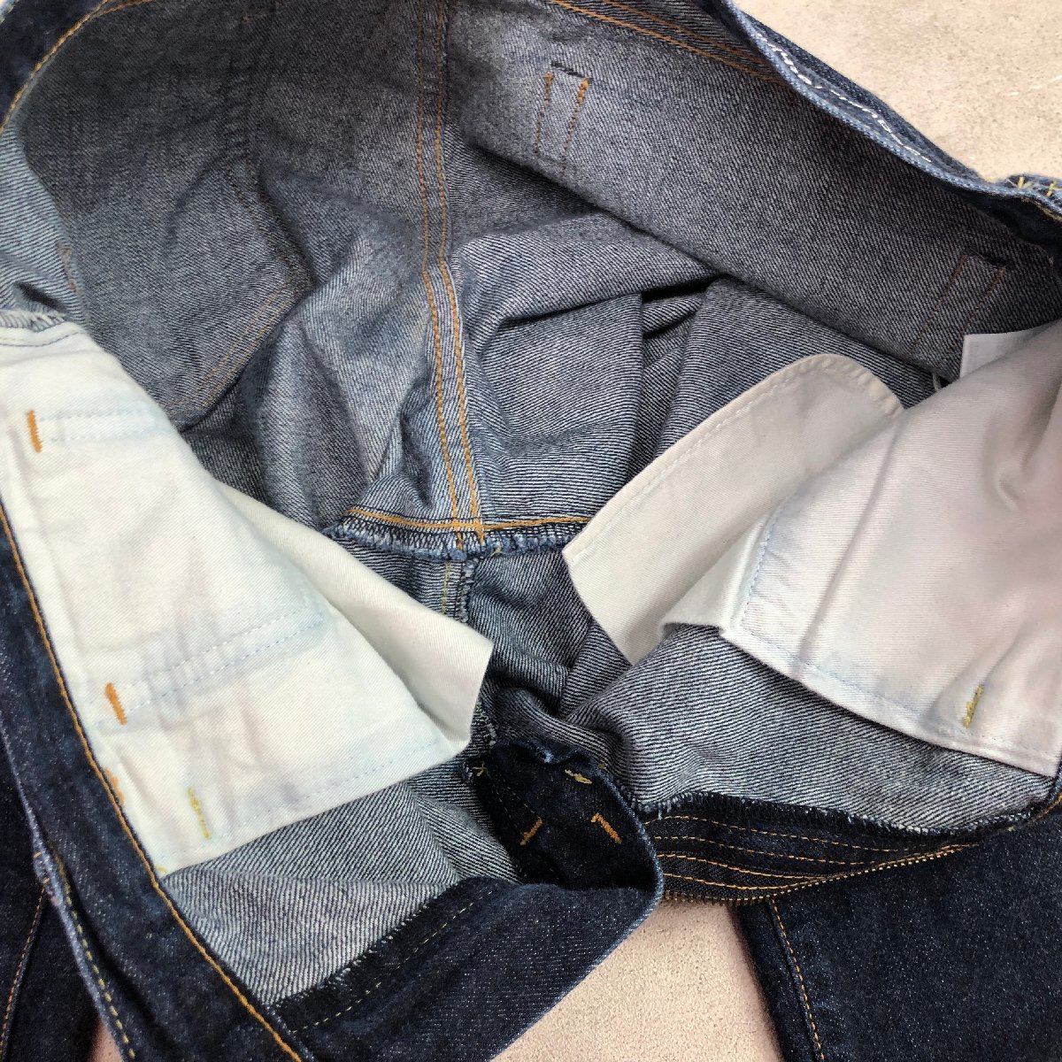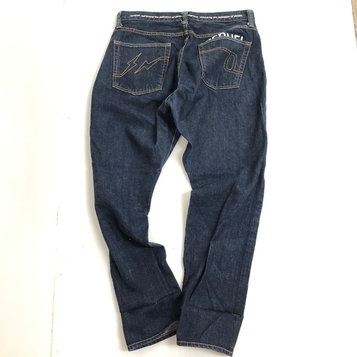 記載サイズ(薄く見えにくいですが恐らくLかと思われます。) 実寸サイズ(平置き):約 総丈102cm ウエスト42cm 股上30cm 股下72cm |