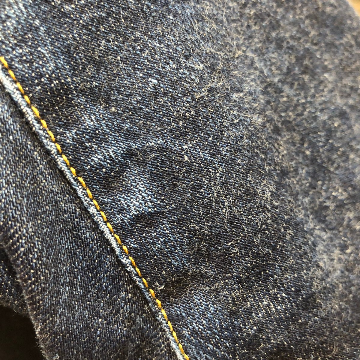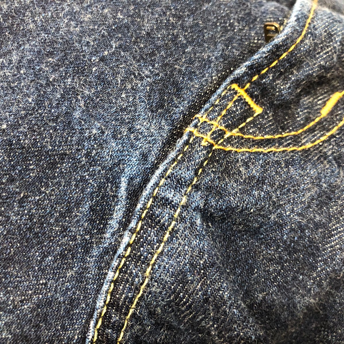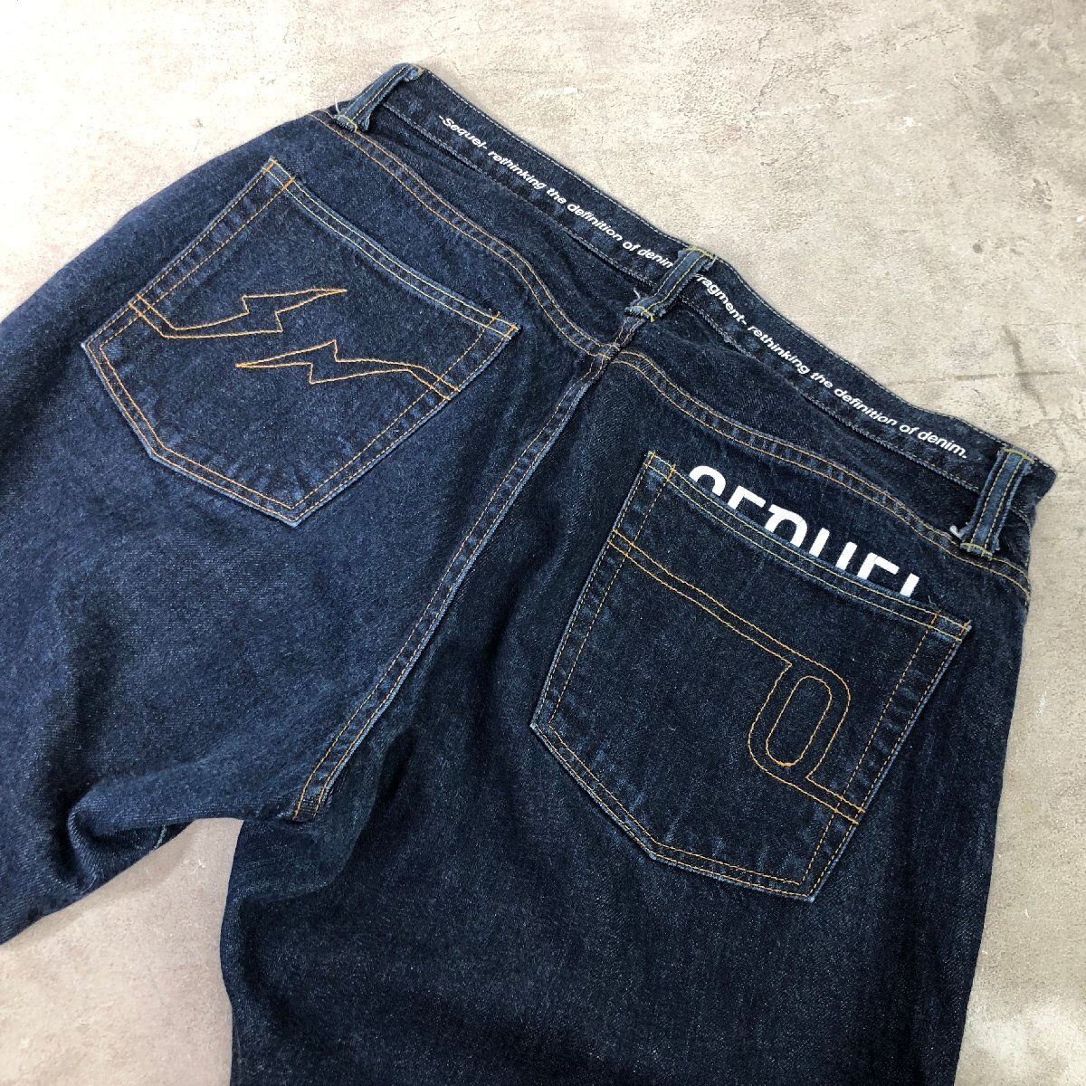 記載サイズ(薄く見えにくいですが恐らくLかと思われます。) 実寸サイズ(平置き):約 総丈102cm ウエスト42cm 股上30cm 股下72cm |