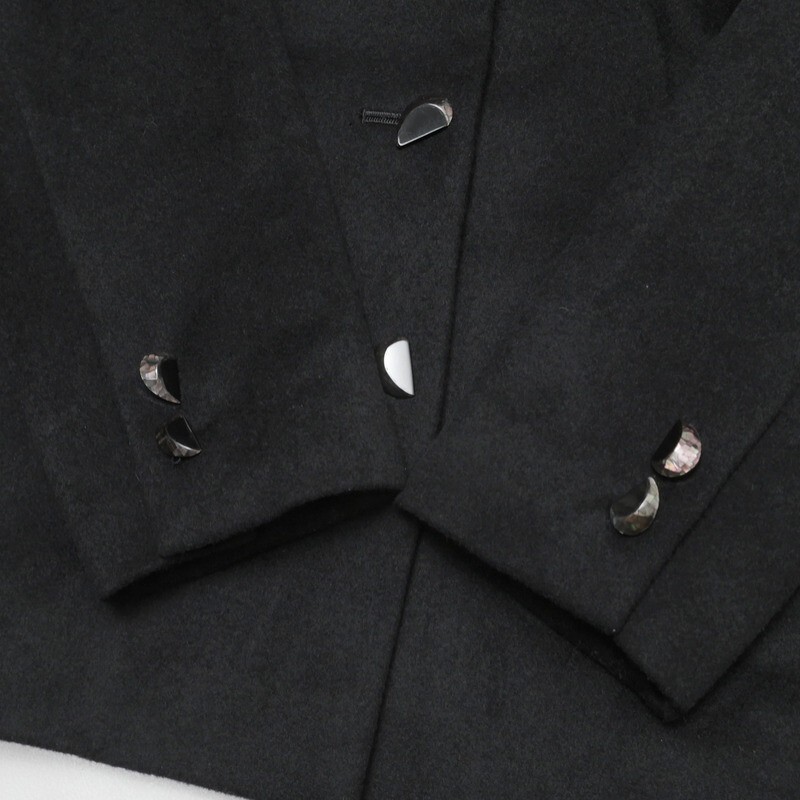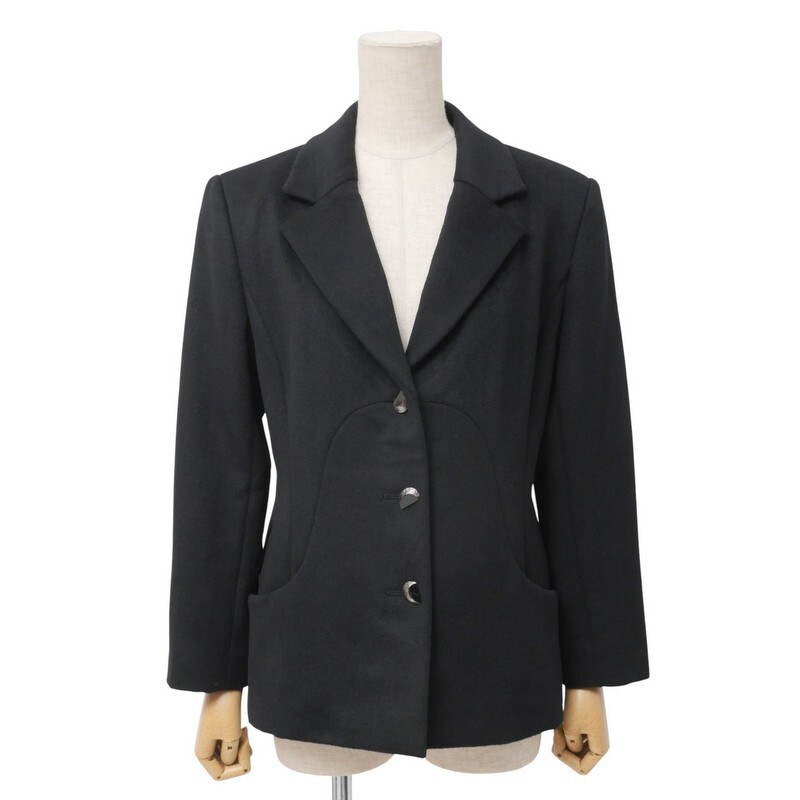 GS0128●日本製*ハナエモリ/HANAE MORI*カシミア ジャケット*ブレザー*カシミア100%*シェルボタン*レディース サイズ40*ブラック | |||