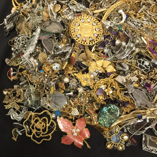 フェイクパール カラーストーン メッキ 他 ネックレス ブローチ カフス 等 イミテーション 総重量約6.1kg まとめ |