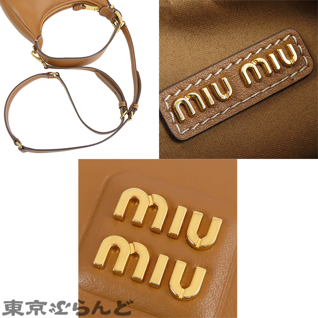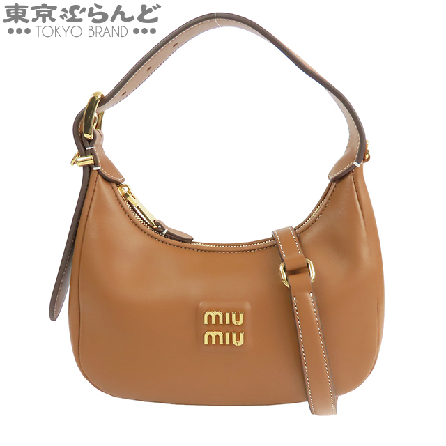 101818309 ミュウミュウ MIUMIU ホーボー バッグ 5BP084 ブラウン レザー 2WAY ハンドバッグ ショルダーバッグ レディース