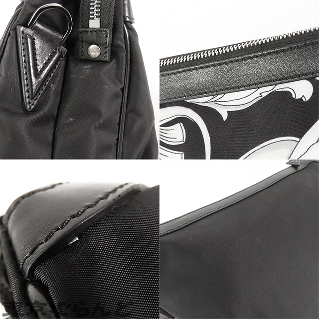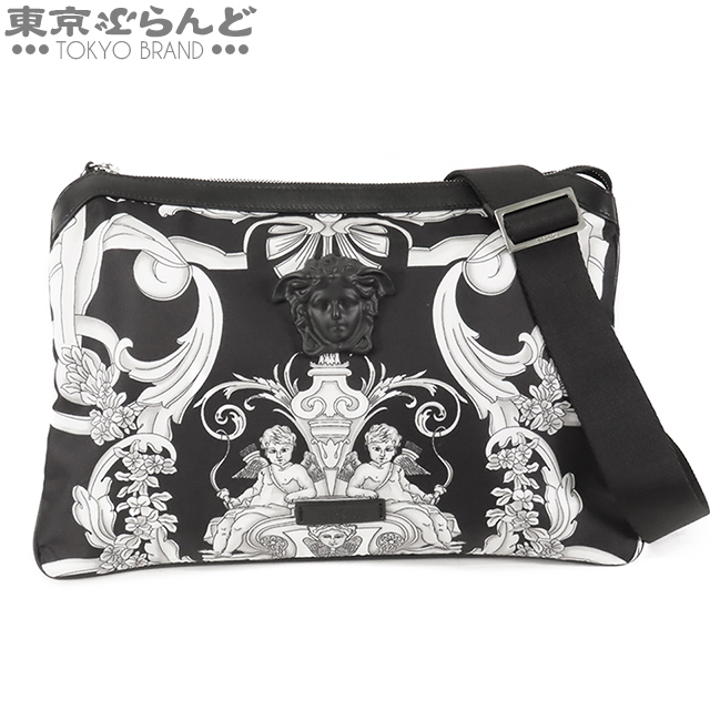 101819981 ヴェルサーチェ VERSACE メドゥーサ ショルダーバッグ ブラックxホワイト ナイロン レザー クラッチバッグ レディース