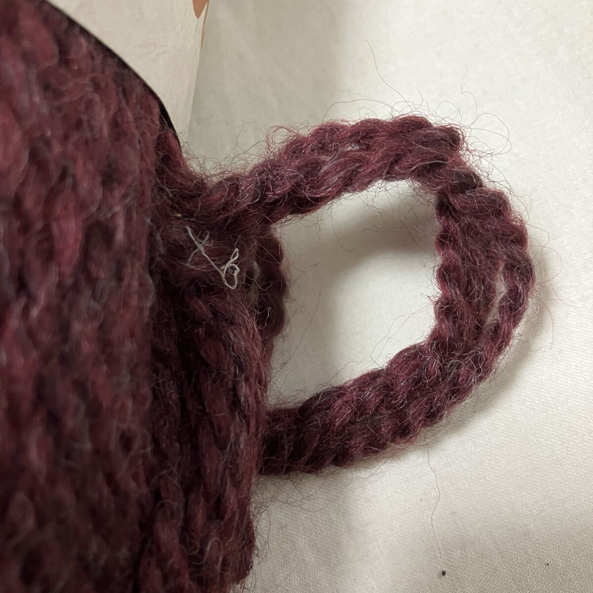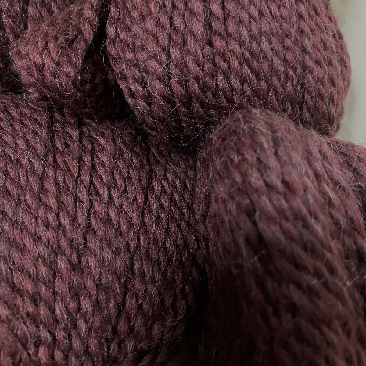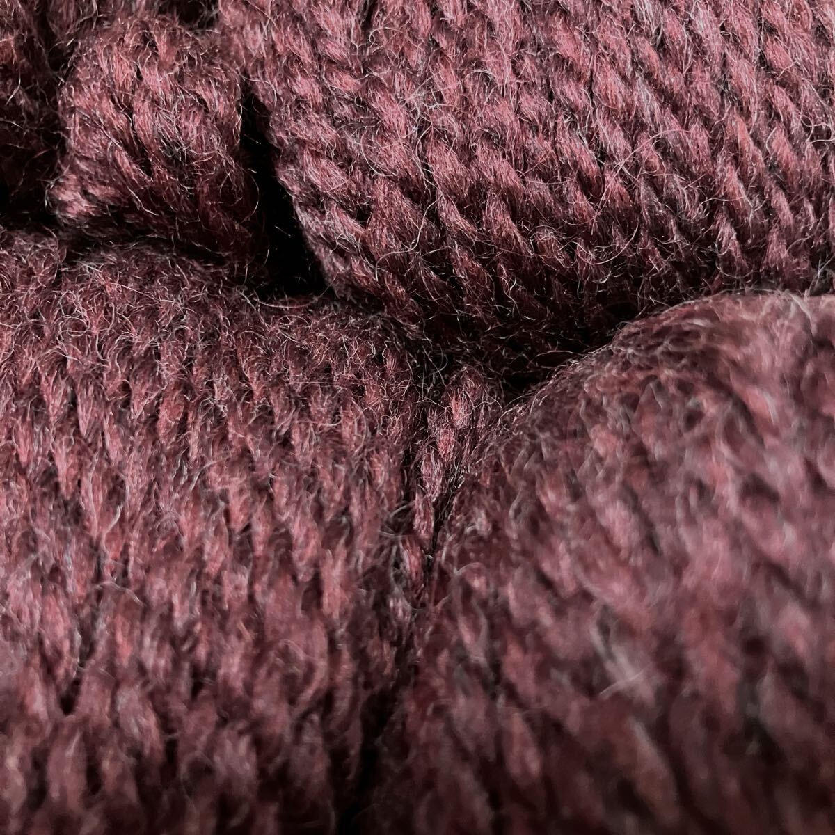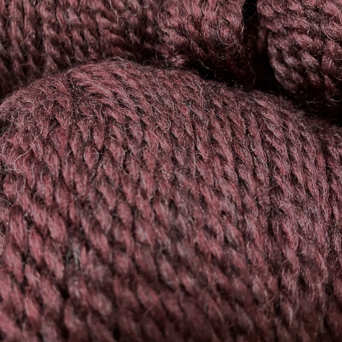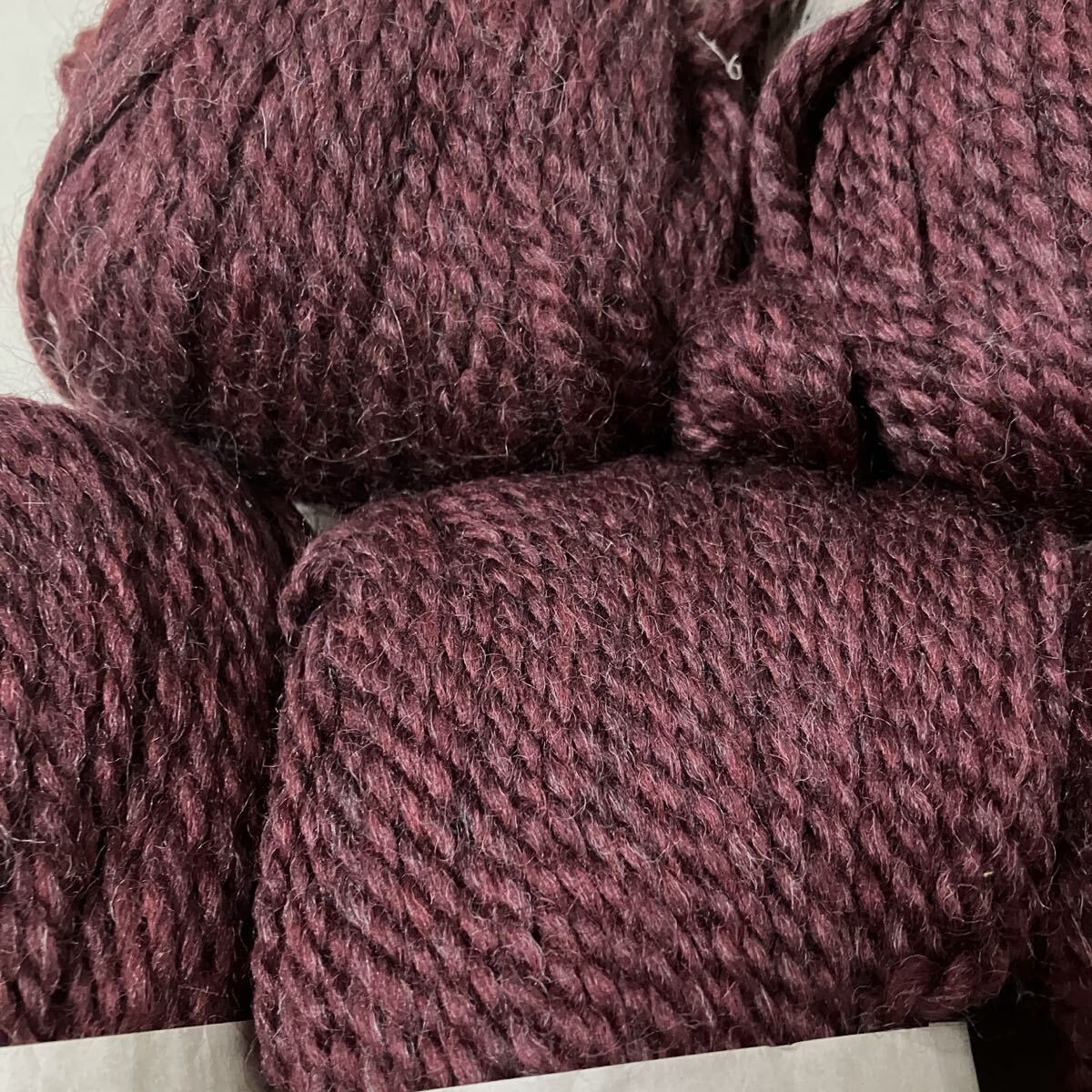ウール100%のダークパープルの高級編み物用毛糸、手洗い可。