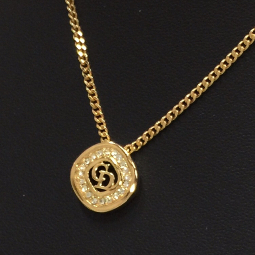 送料360円 クリスチャンディオール ラインストーン CDロゴ ネックレス レディース ゴールドカラー QH102-190 同梱NG |