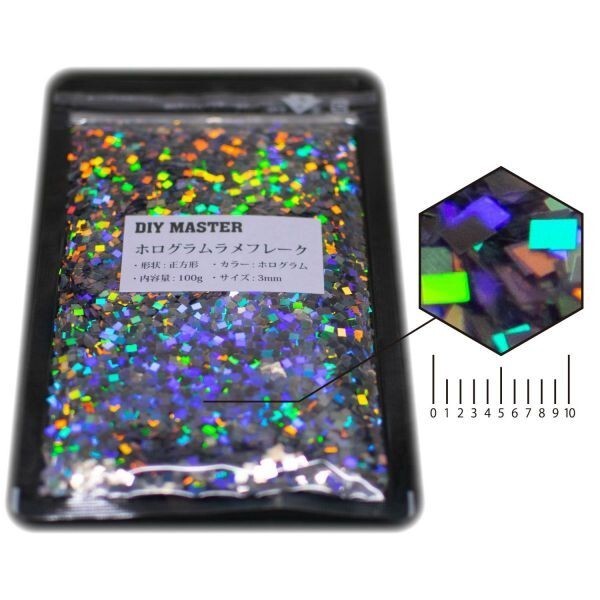 ◆DIY MASTER ホログラム ラメ フレーク スクウェア 3mm 100g◆ | |||||||||