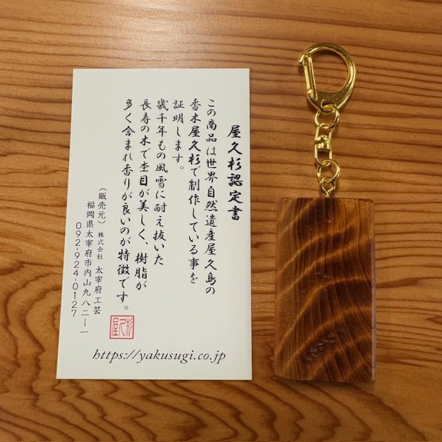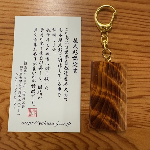 樹齢1000年屋久杉 強虎杢キーホルダー ウレタン塗装仕上げ