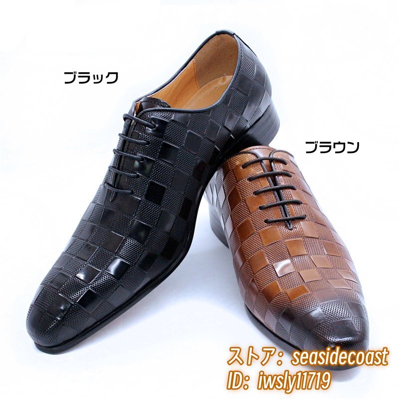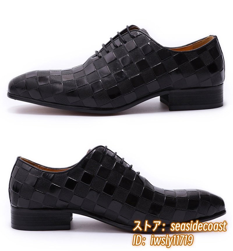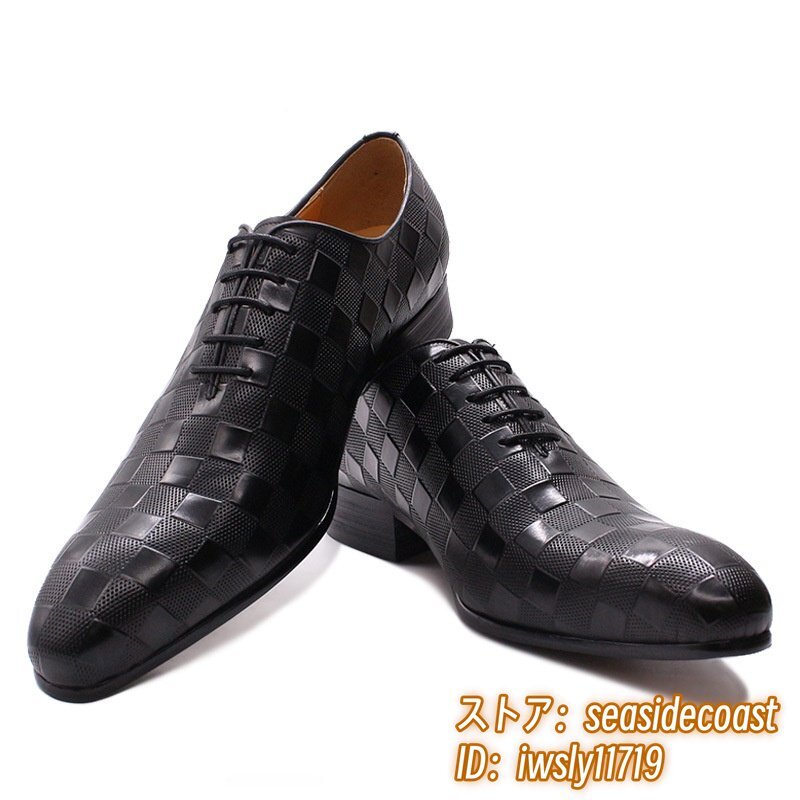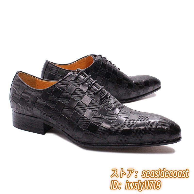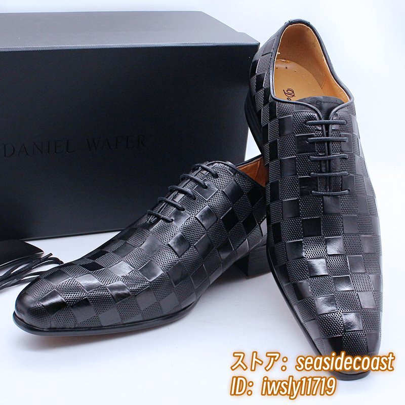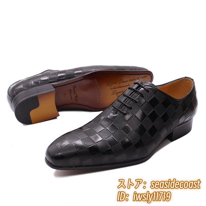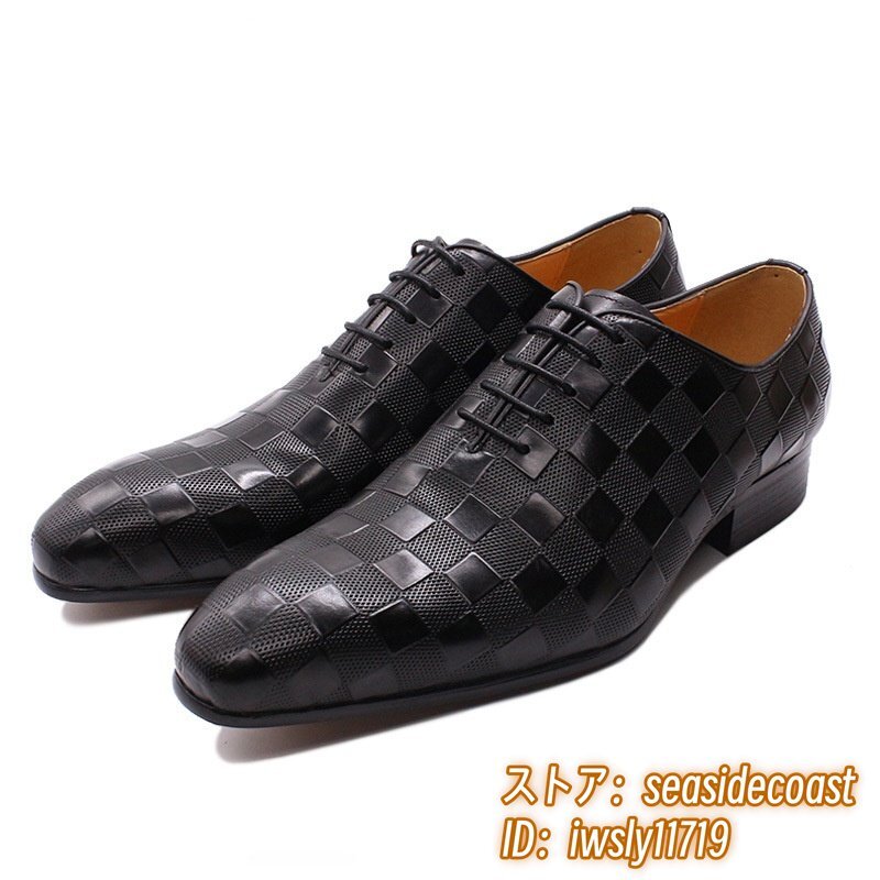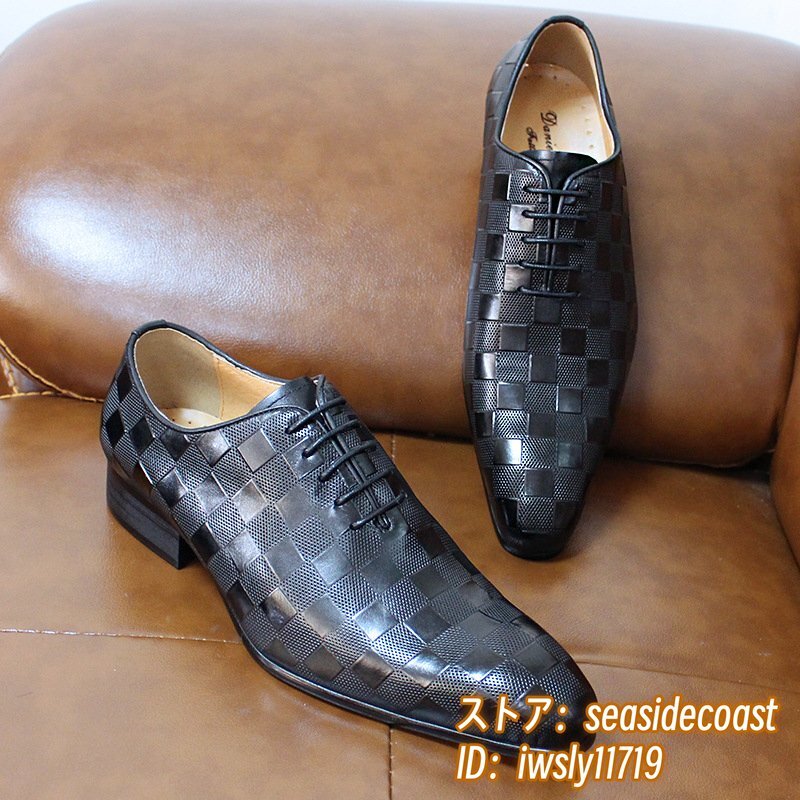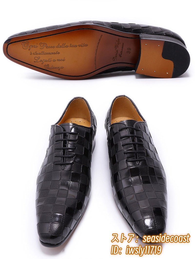 定価10万超◆超希少 メンズシューズ チェック柄 本革 ビジネスシューズ ハンドメイド 牛革 レザーシューズ ドレス 宴会 ブラック 27.5cm