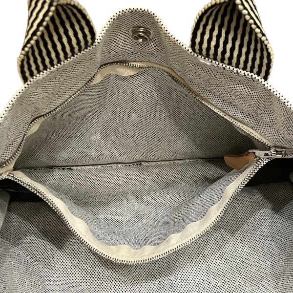 | 【ブランド】エルメス 【商品名】ニューフールトゥPM 【カラー】グレー 【素材】キャンバス 【仕様】外側:ポケットなし 内側:ファスナー付ポケット×1 【サイズ】H約22cm×W約30cm×D約7cm 持ち手:約23cm 【付属品】なし 【ランク】B (使用感あり) 【状態】 持ち手:汚れ、毛羽立ち、小程度有り 外側の状態:角擦れ、汚れ、型崩れ、毛羽立ち、小程度有り 内側の状態:汚れ、使用感、小程度有り 金具の状態:擦れ、傷、小程度有り | |