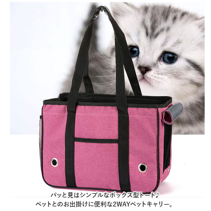 商品説明・・パッと見はシンプルなボックス型トート♪ペットとのお出掛けに便利な2WAYペットキャリー。