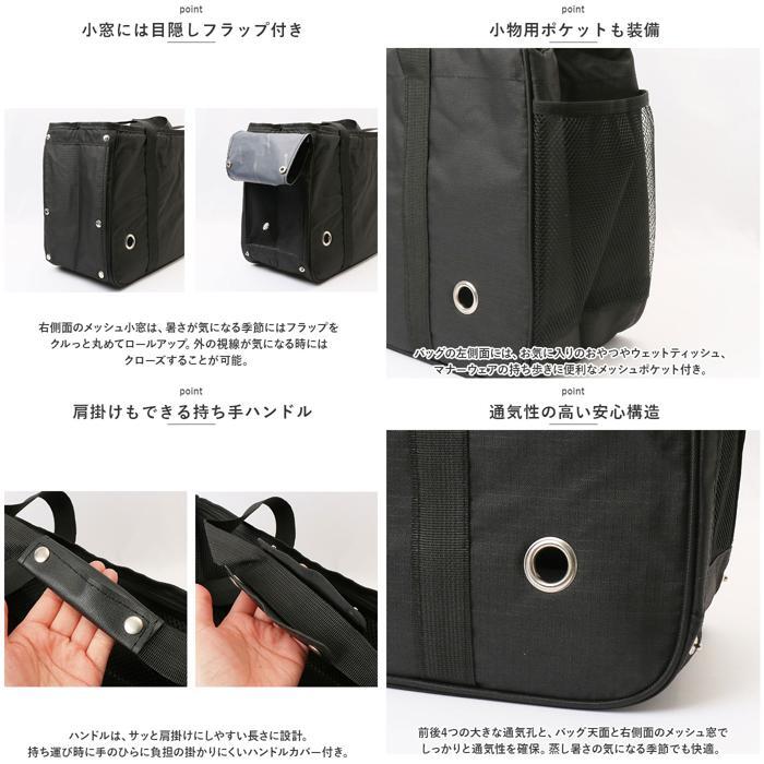 ・移動中にバッグが型崩れしにくく、ペットが安定した状態でくつろげる底敷き板付き。