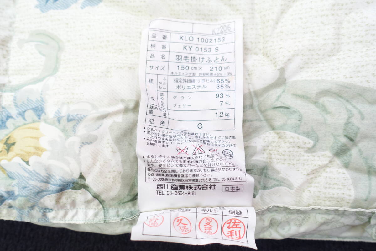 667 送料無料 展示品 西川 マザーグース 羽毛布団 シングルサイズ