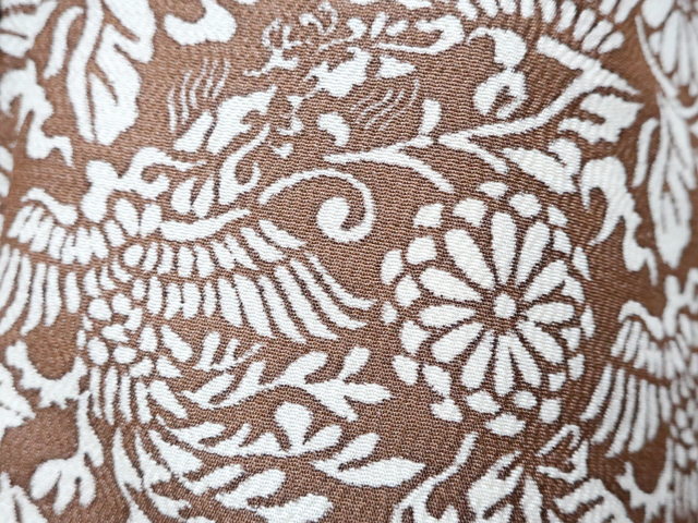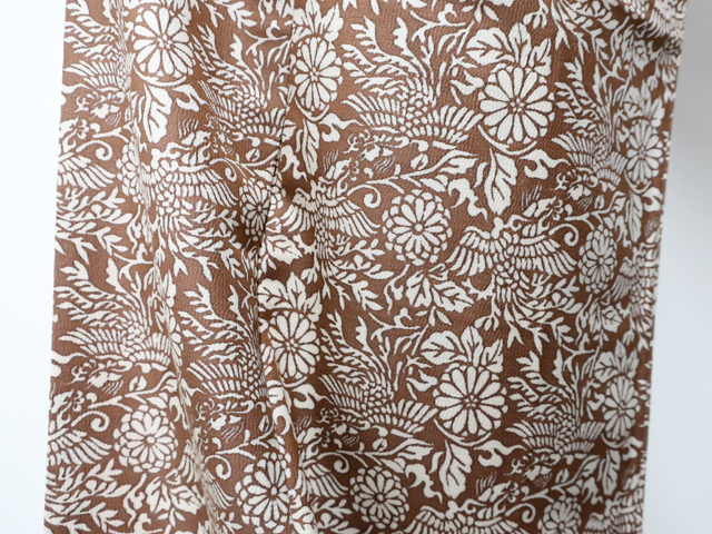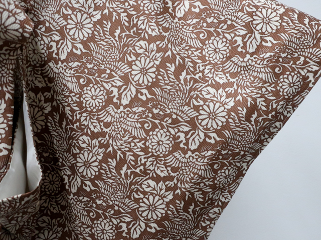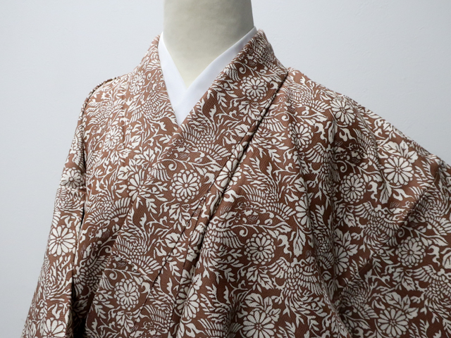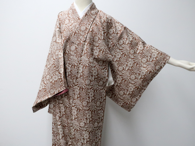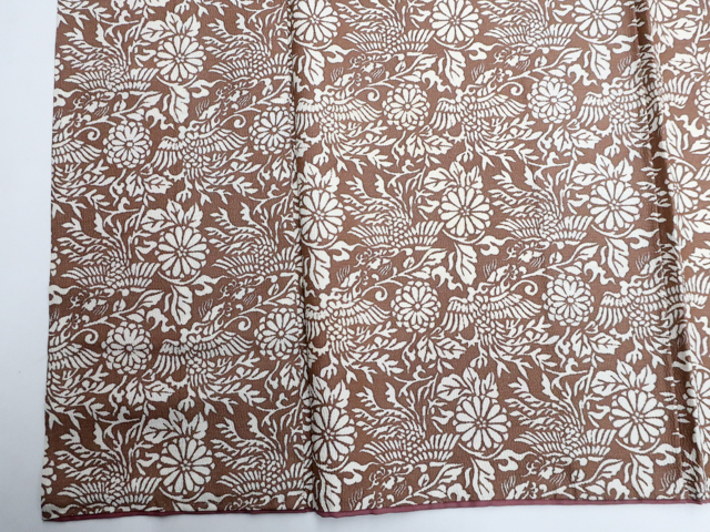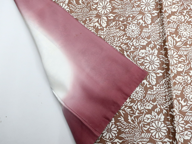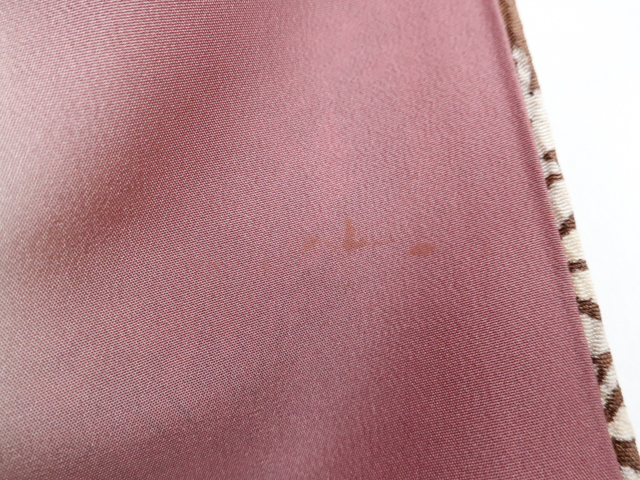 リサイクル商品のため、八掛けにがございますがご着用いただけると存じます。 地色は、小豆 です。 1枚目の画像が近いお色かと思われます。 素材は正絹です。 |