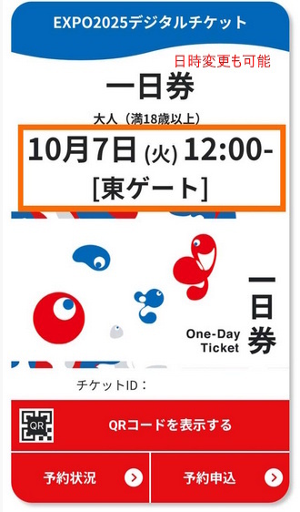 即決あり 大阪関西万博 1日券 10月7日(火)東ゲート 12時 大人1枚 EXPO2025 入場チケット 送料無料 匿名配送