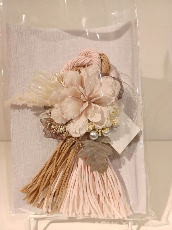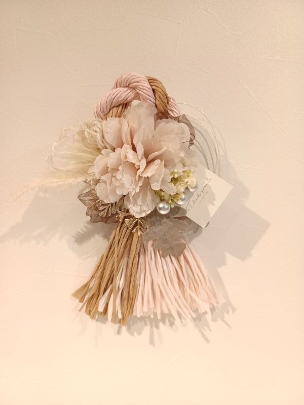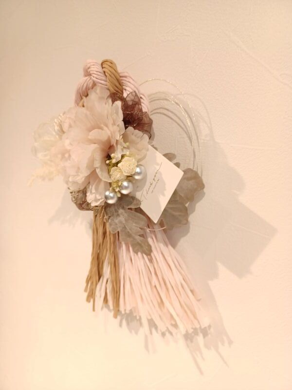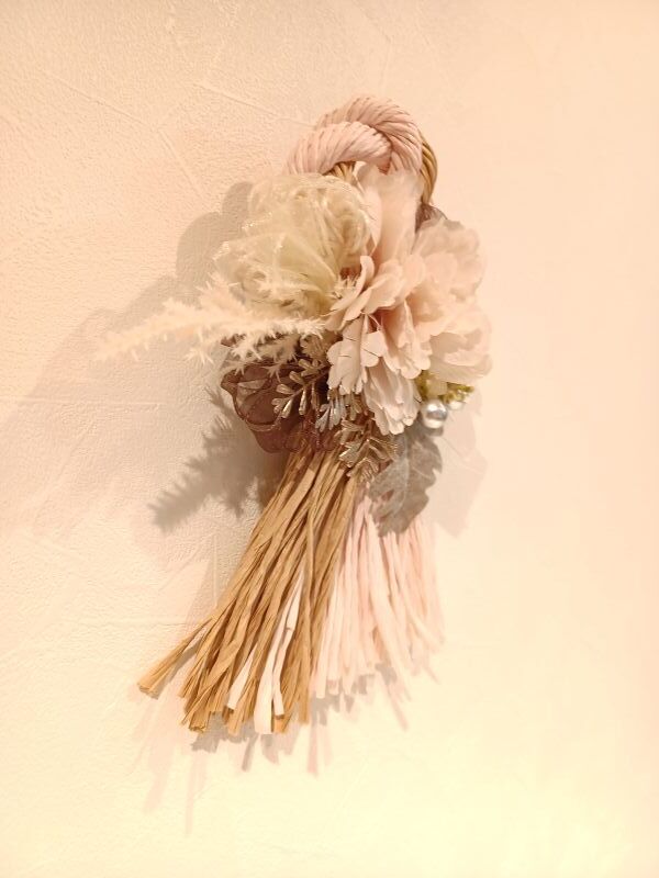ナチュラルな風合いをもつ造花を使用した和と洋を取り入れたしめ縄リースです。