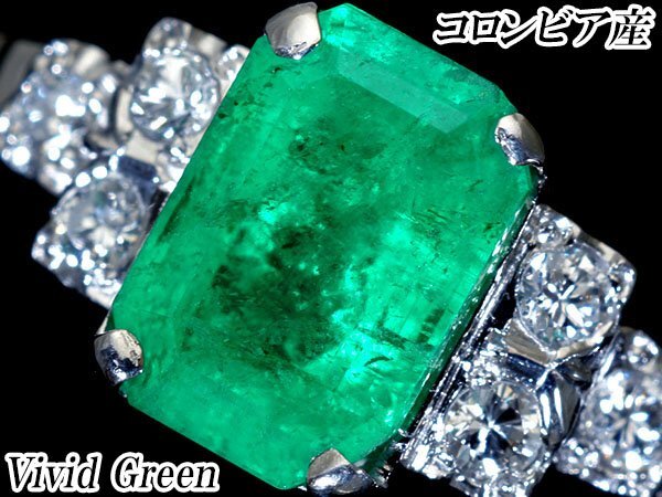1円~【ジュエリー極】鑑 コロンビア産 ビビッドグリーン 極上天然エメラルド2.08ct&ダイヤ0.24ct 高級Pt850リング kitk755ix【送料無料】
