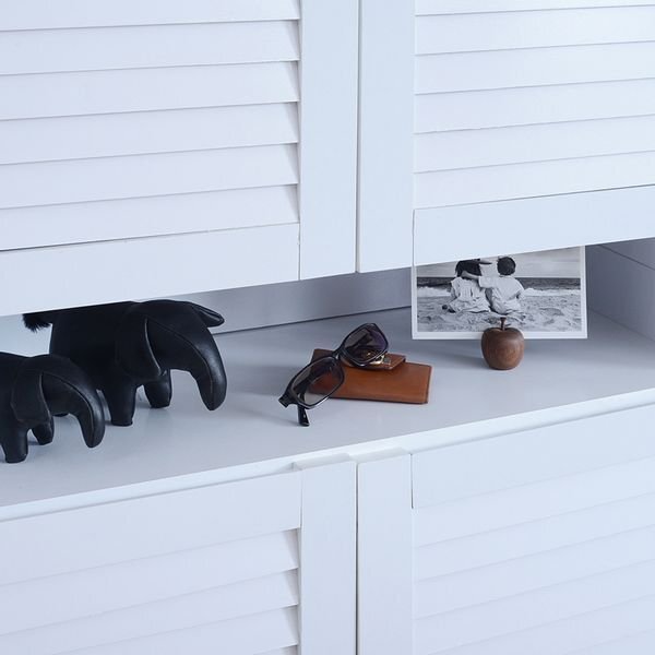 本格的ルーバー扉を採用。 通気性にすぐれた扉で靴はいつでも乾燥状態が保てます。 縦にも横にも使えて場所を選ばず使用可能。 シューズボックスとしてだけでなく、リビングの収納庫にも使える優れものです。 |