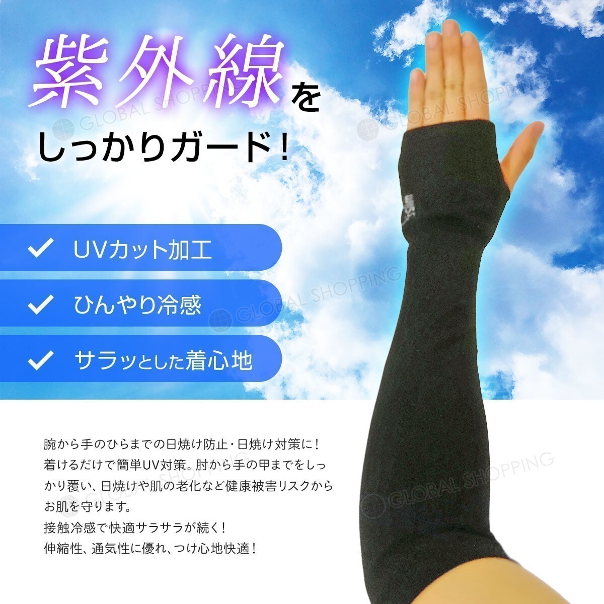 手のひらから腕までしっかり覆うロングタイプなので日焼け対策に最適!