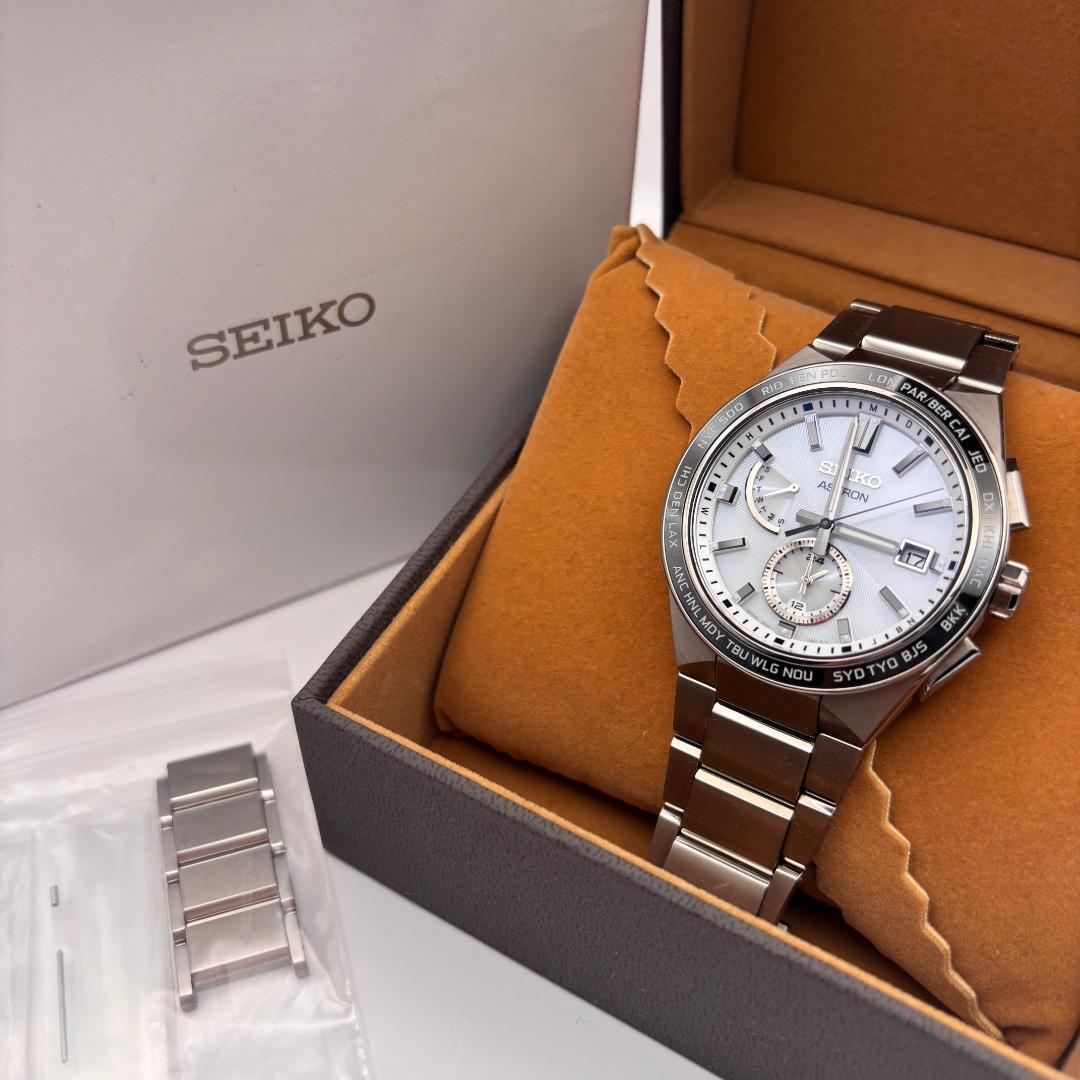 【美品 SEIKO セイコー 8B63-0BD0 SBXY049 腕時計 メンズ アストロン ネクスター ソーラー電波 チタン ホワイト文字盤】