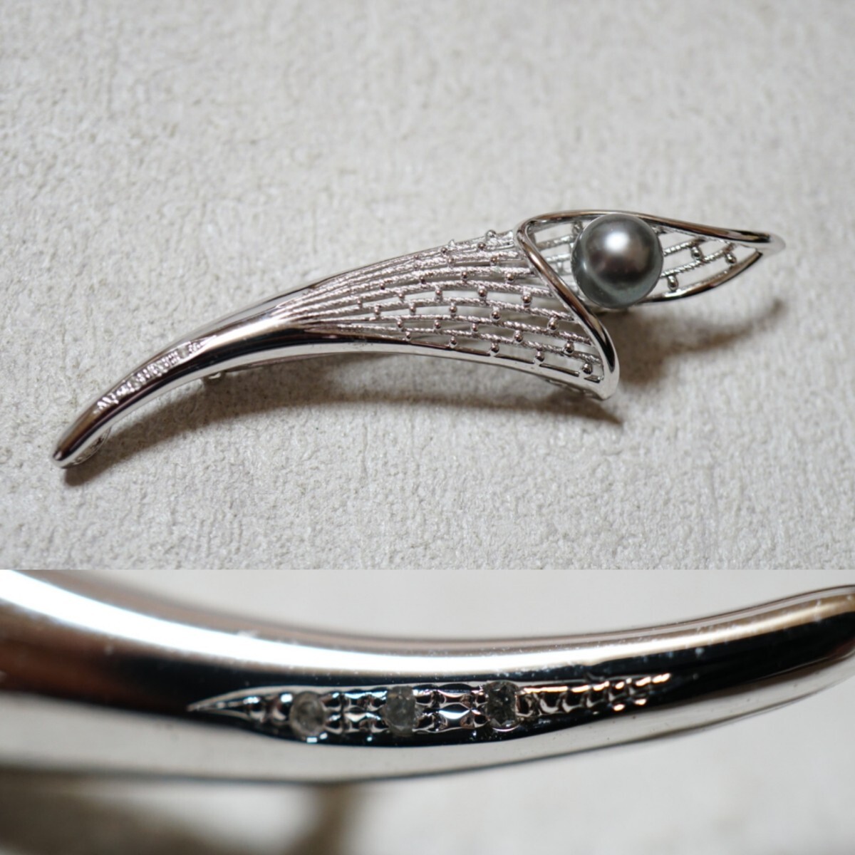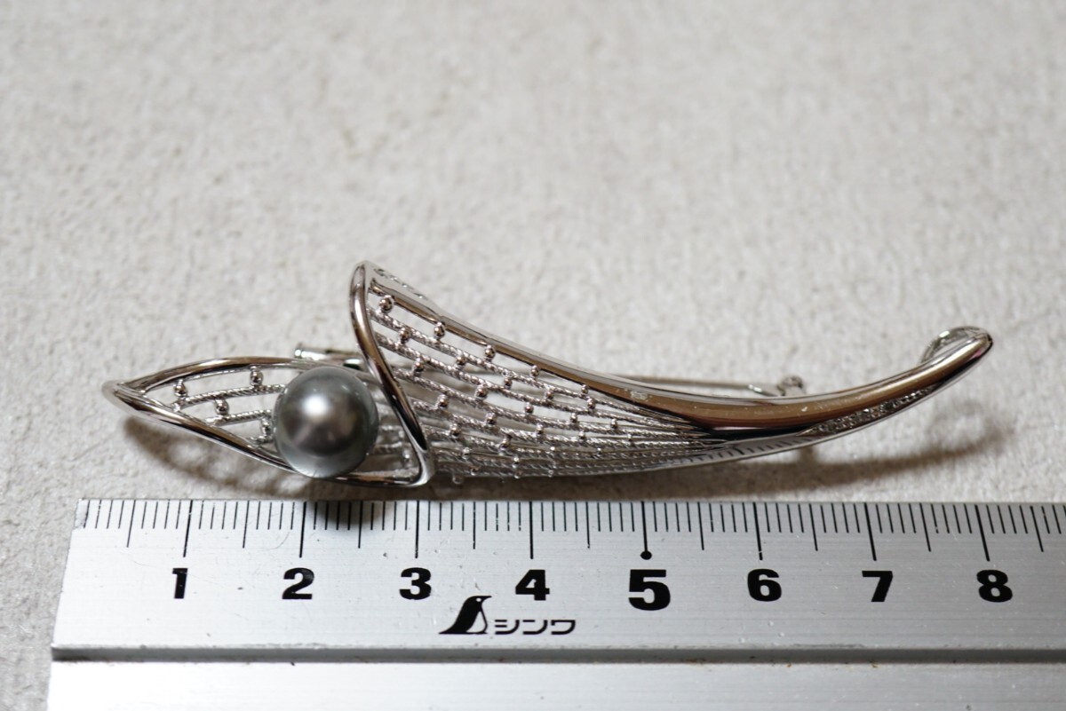 137 黒真珠 天然ダイヤモンド 本真珠 パール シルバー ペンダント ブローチ ヴィンテージ アクセサリー SILVER 925刻印 冠婚葬祭 装飾品