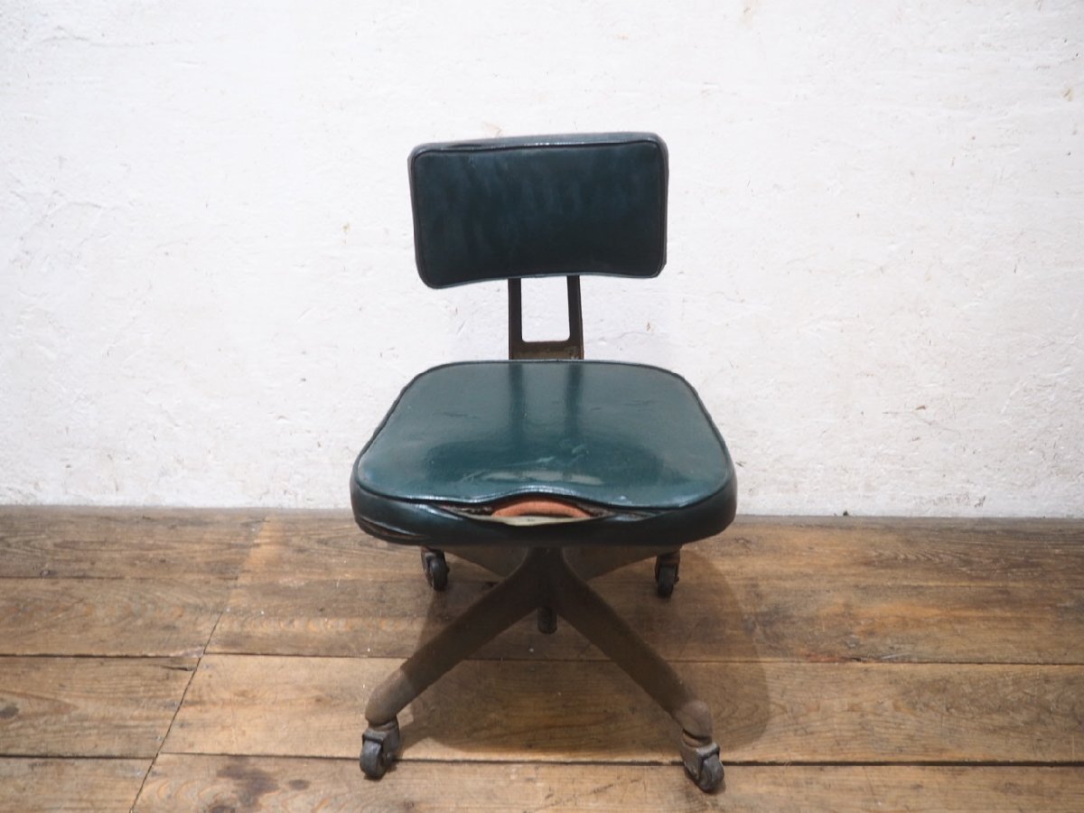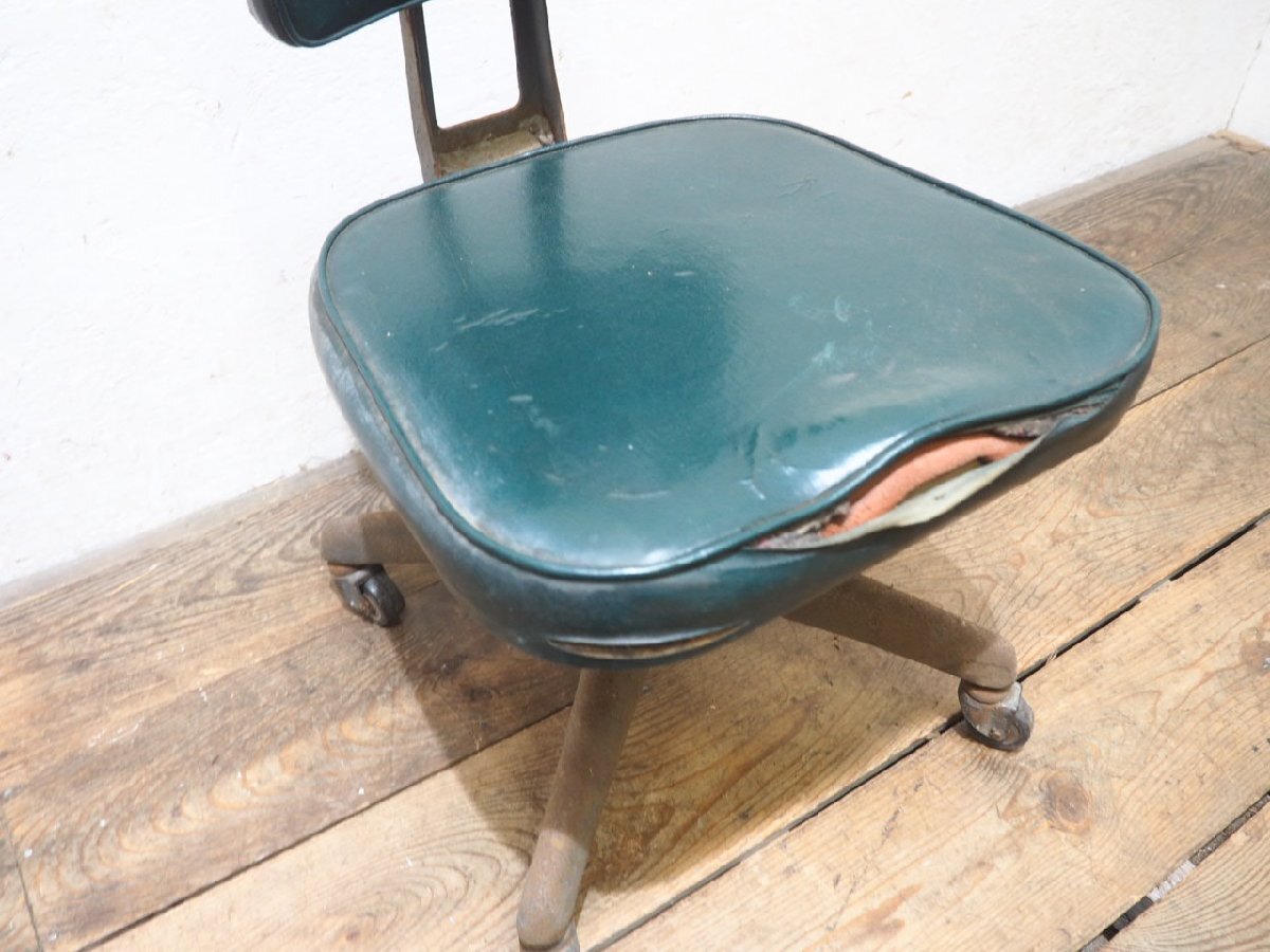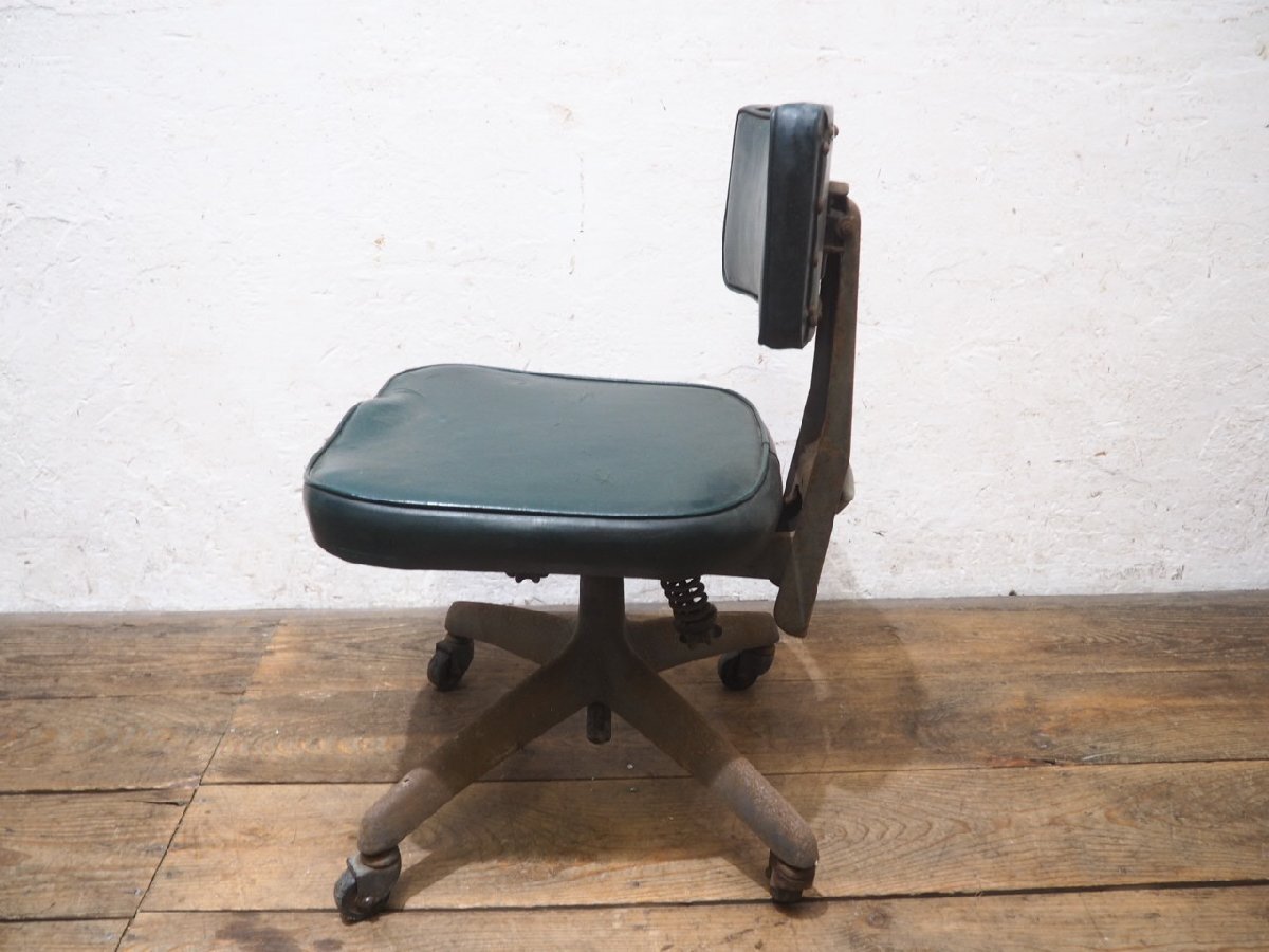 タW1998◆ヴィンテージ◆キャスター付き◆レトロな古い鉄脚チェア◆当時物 工業系 イス 回転椅子 インダストリアルK笹4