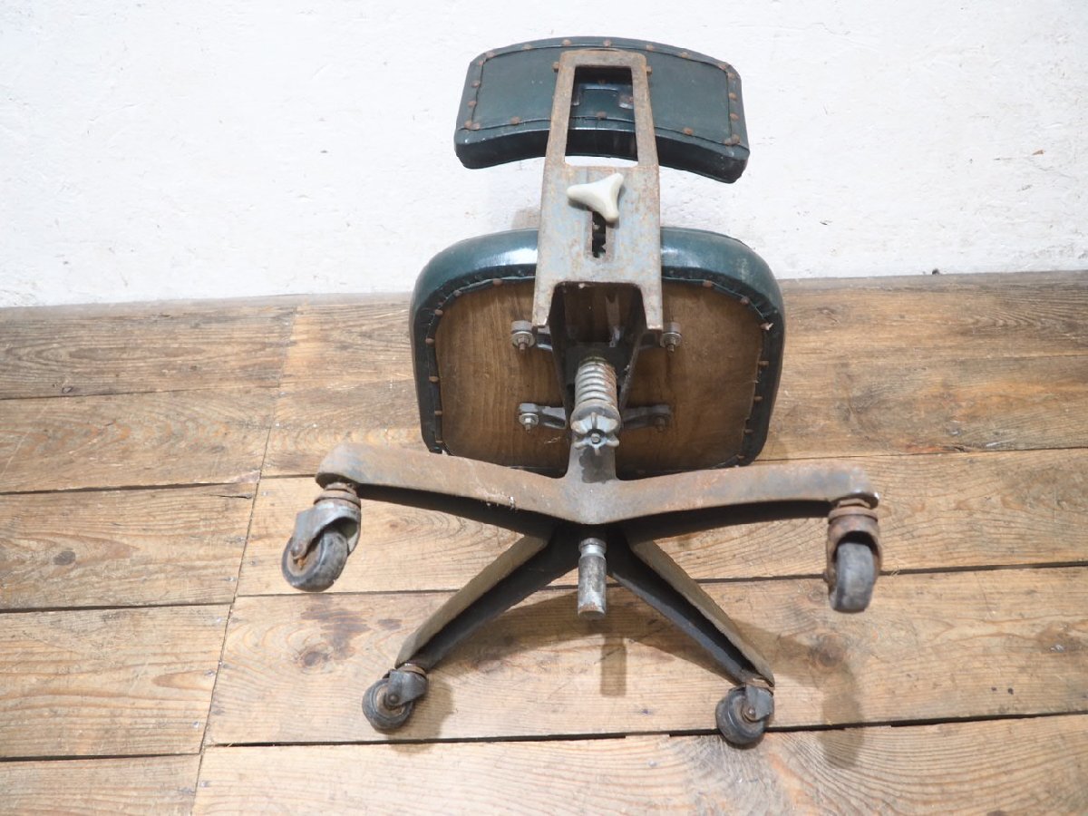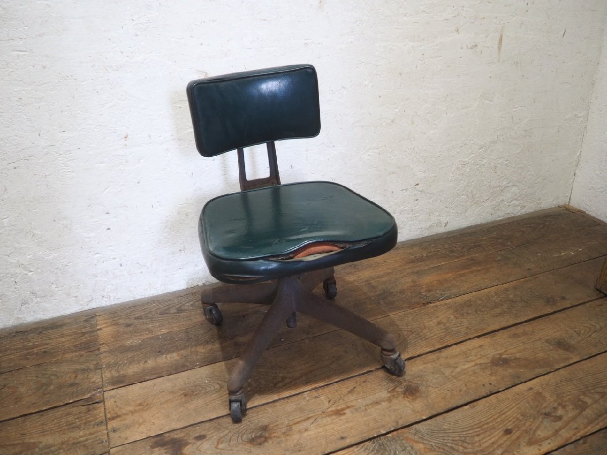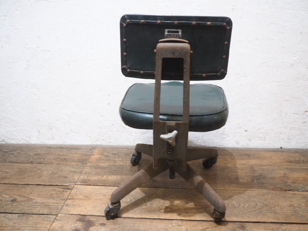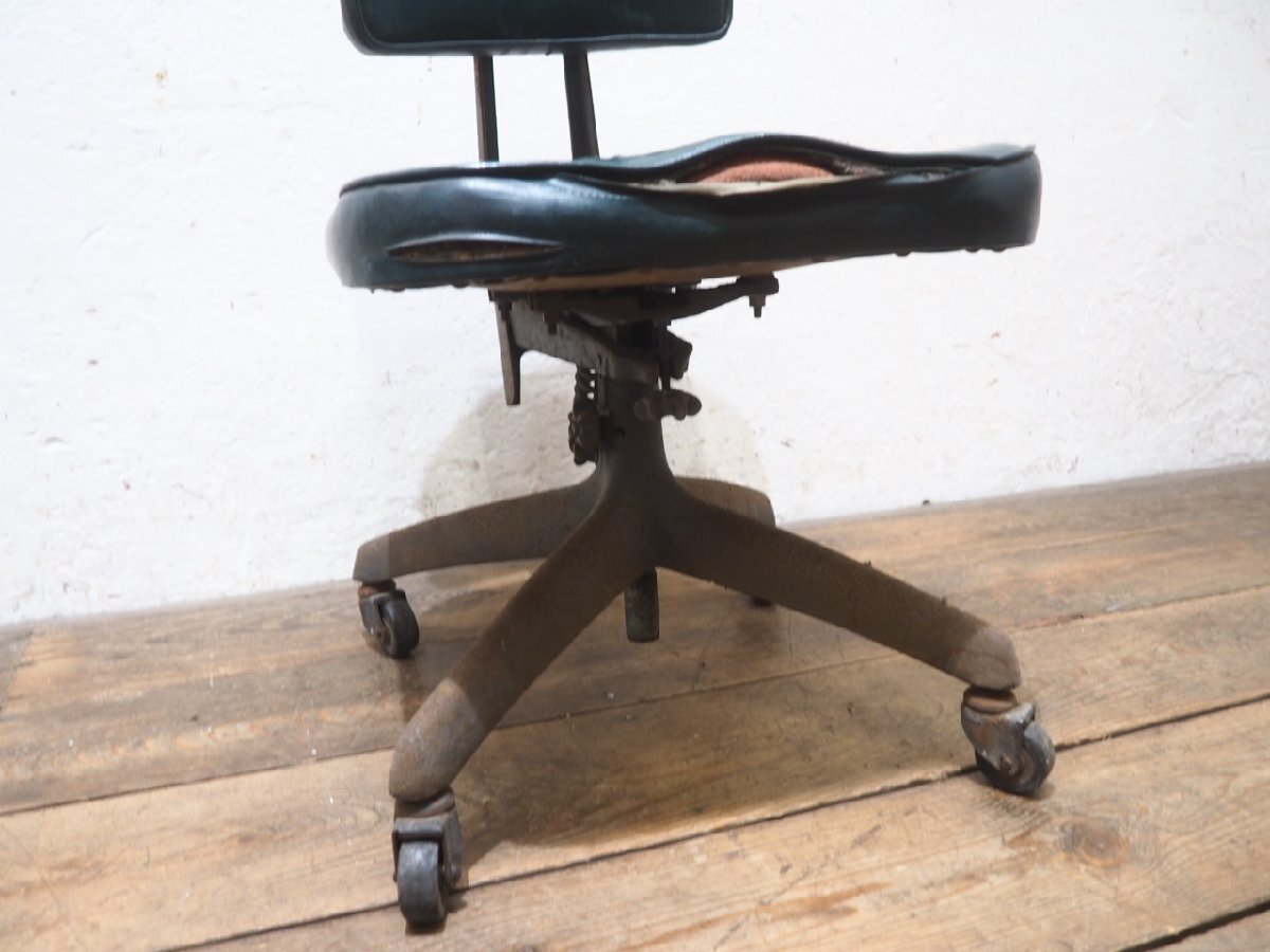 タW1998◆ヴィンテージ◆キャスター付き◆レトロな古い鉄脚チェア◆当時物 工業系 イス 回転椅子 インダストリアルK笹4