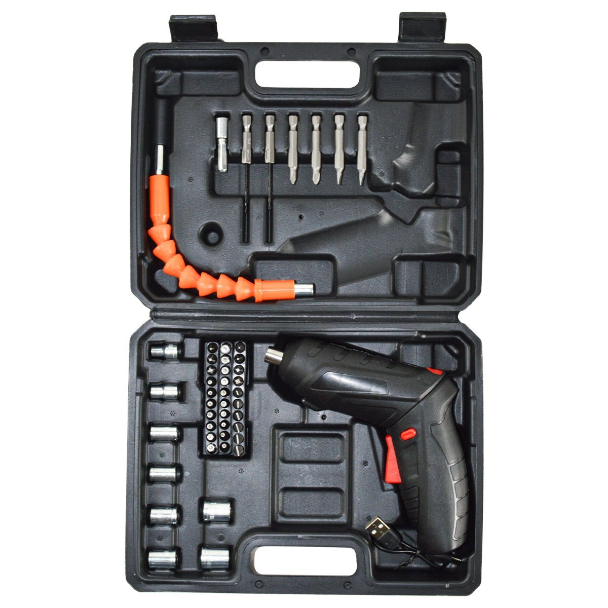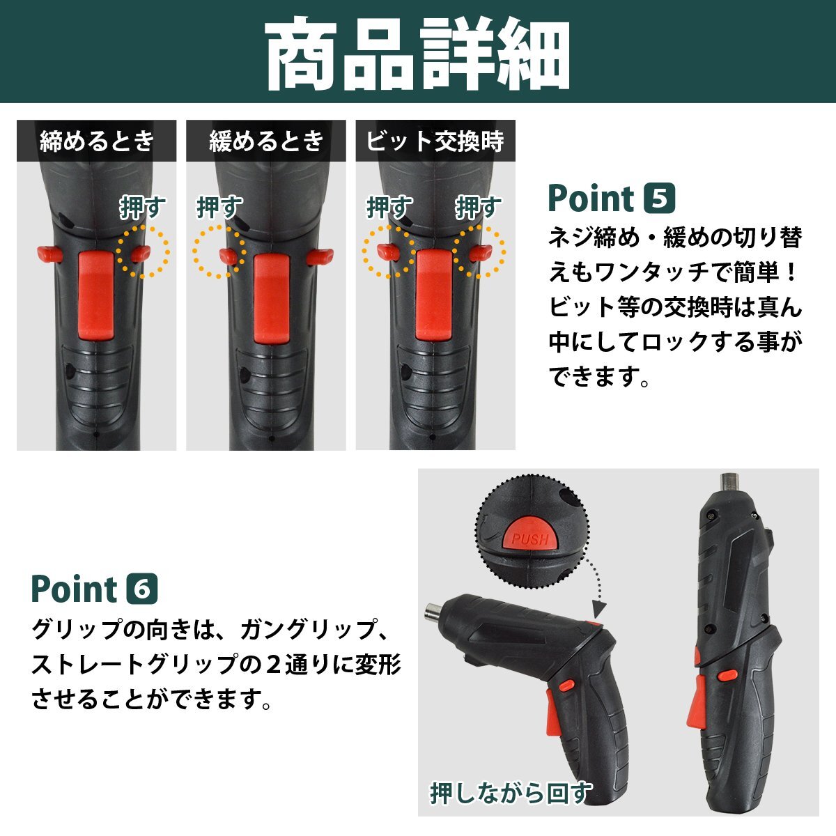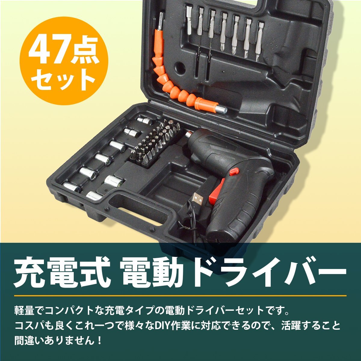 電動ドライバー 充電式 小型 コードレス 超軽量 電動 コンパクト ドライバー 正逆転切り替え LEDライト付 47点 工具付き