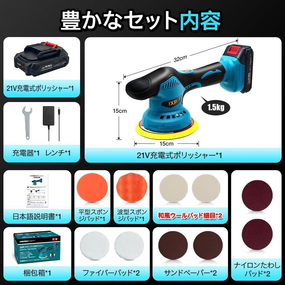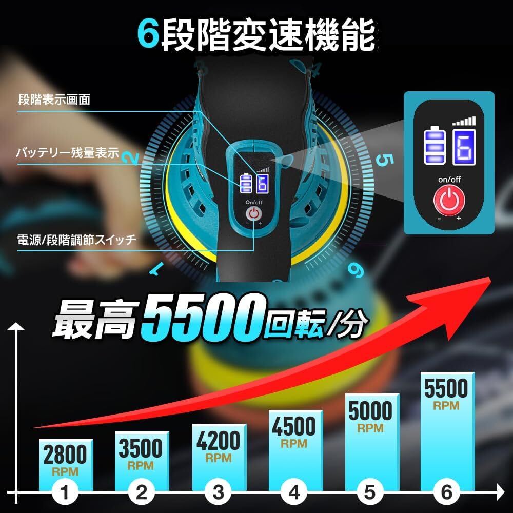 ポリッシャー 車 150mm バフ 6段階変速 和式ポリッシャーバフ付き 1.5Ahマキタ 互換 バッテリー付き 21V 電動ポリッシャー 2800-5500RPM