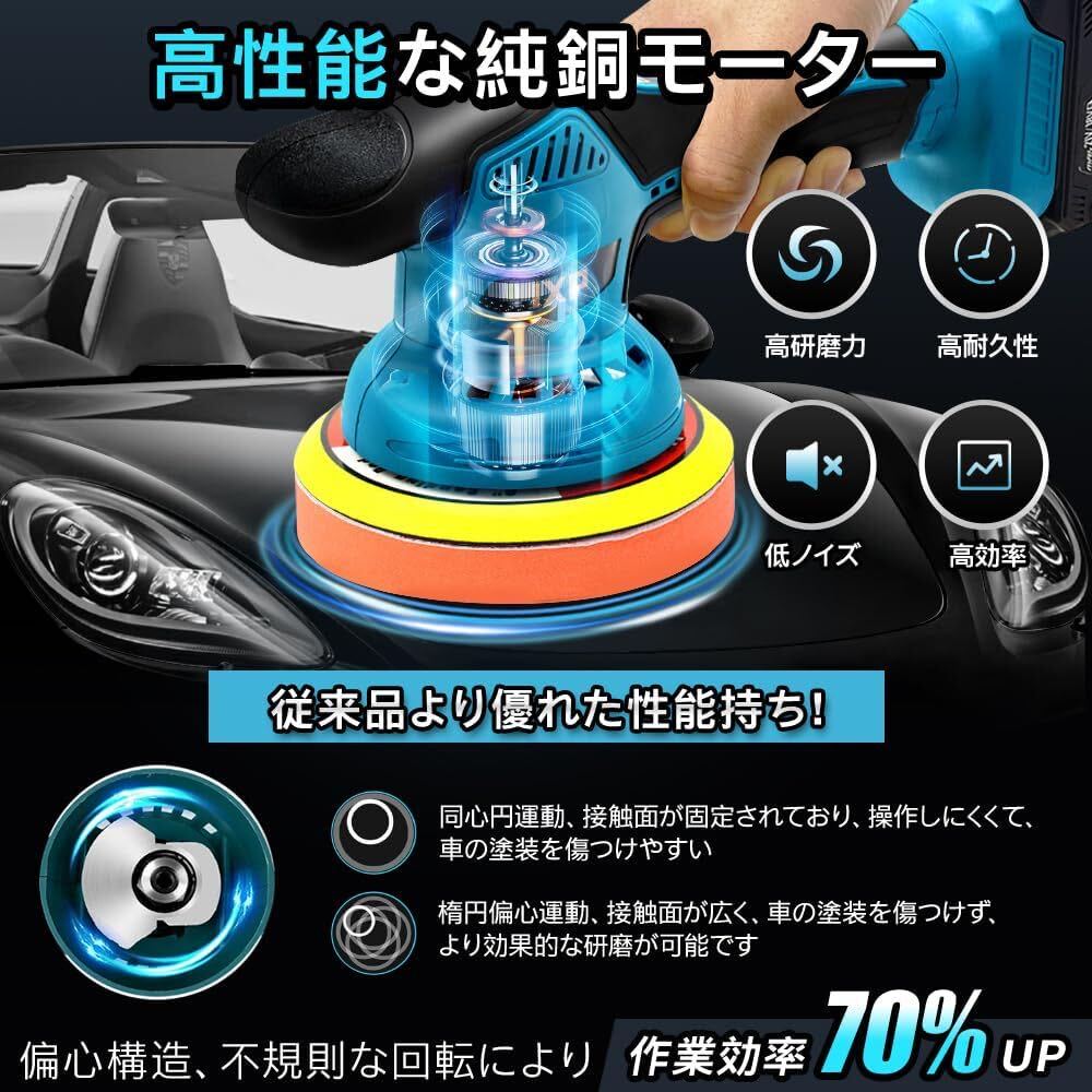 ポリッシャー 車 150mm バフ 6段階変速 和式ポリッシャーバフ付き 1.5Ahマキタ 互換 バッテリー付き 21V 電動ポリッシャー 2800-5500RPM ポリッシャー コードレス 充電式ポリッシャー 研磨機 ダブルアクションポリッシャー 偏心構造 車両メンテナンス 残量表示 小型 軽量 研磨機 洗車 車磨き 鏡面磨き 傷消し 艶出し 研磨 ワックス作業 豊かな付属品 家庭用