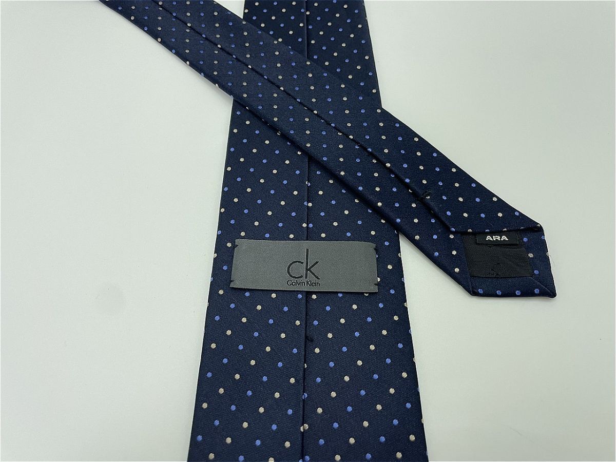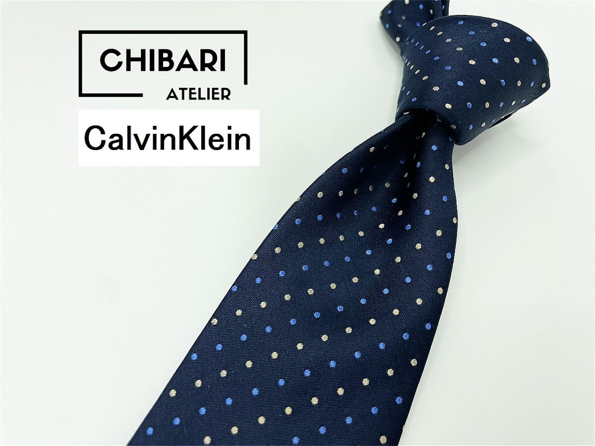 【超美品】CalvinKlein カルバンクライン ドット柄 ネクタイ 3本以上 送料無料 メンズ ネイビー 0902037