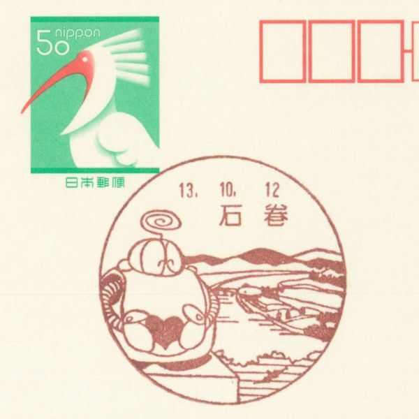 風景印☆初日☆宮城・石巻・H13.10.12・ロボコン