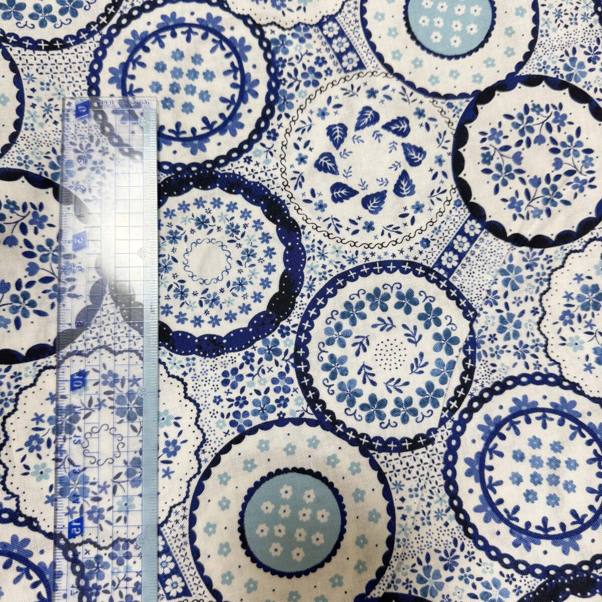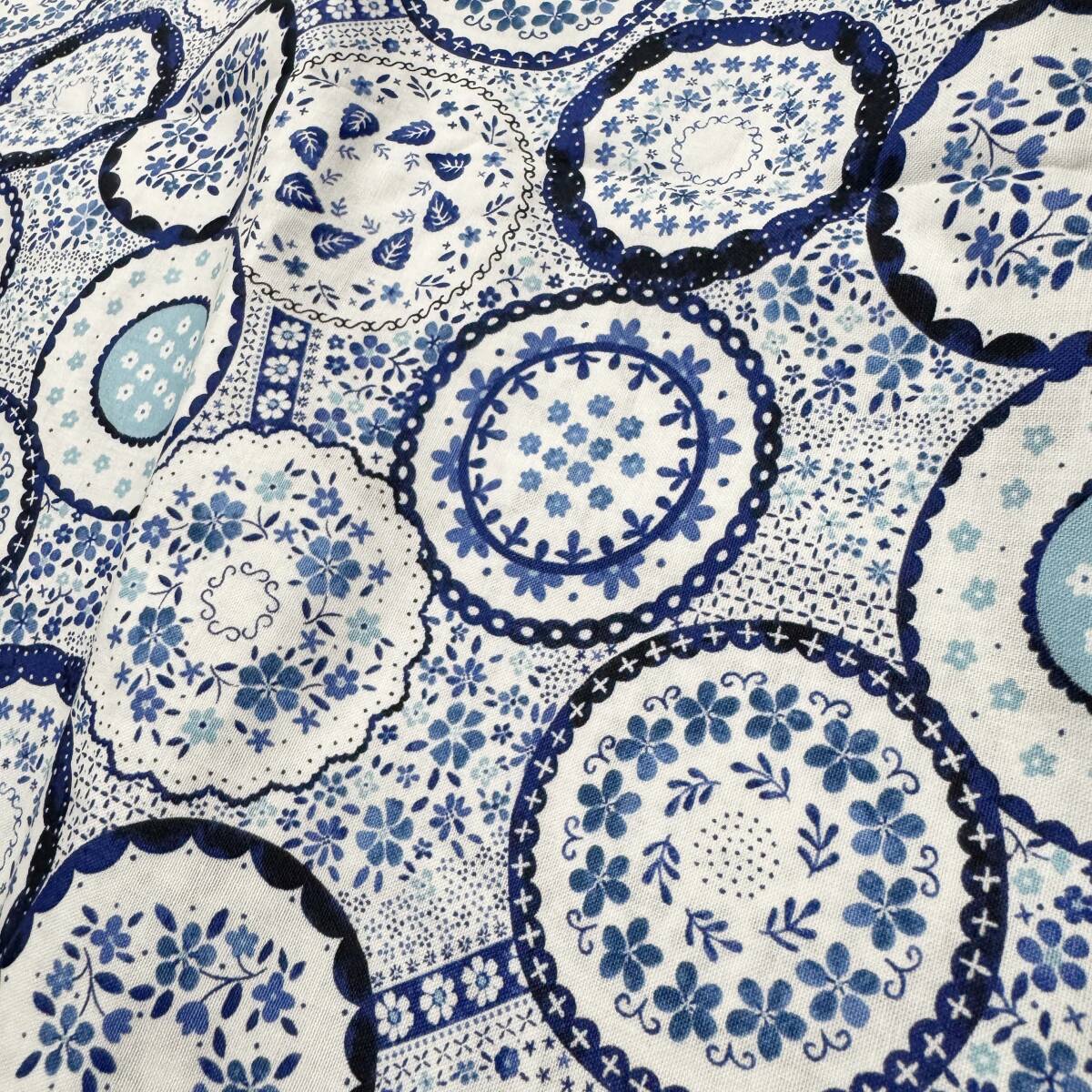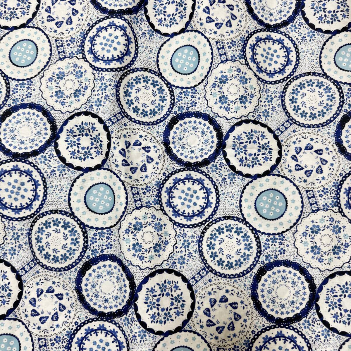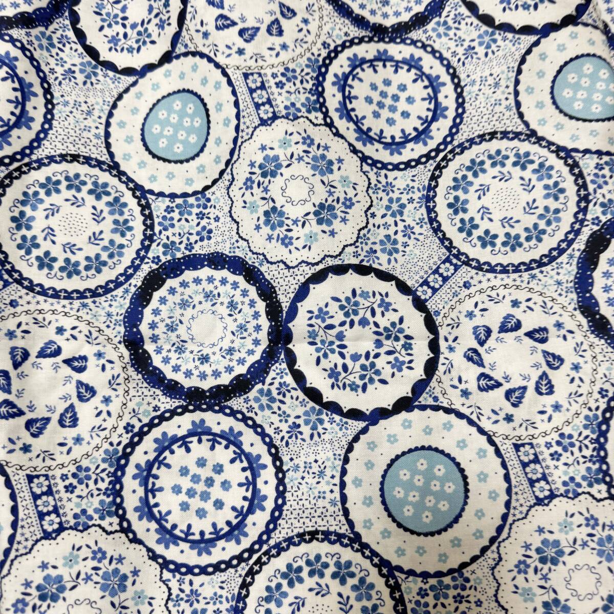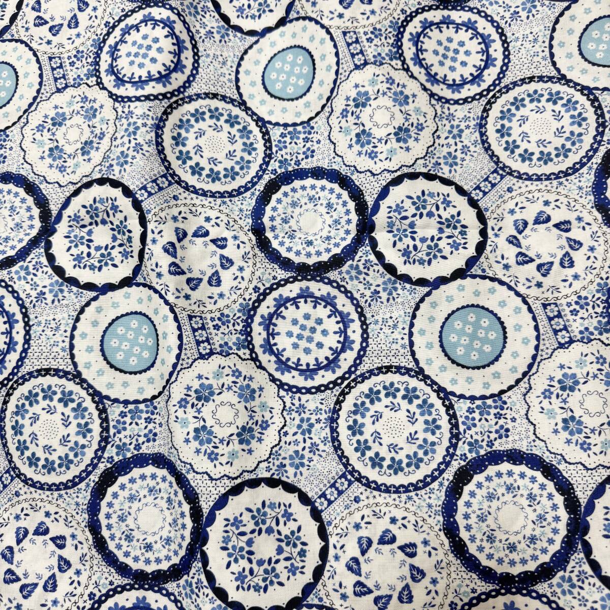 プロバンス南仏風ブルー花皿柄シーチング綿生地2mはぎれ布カットクロス