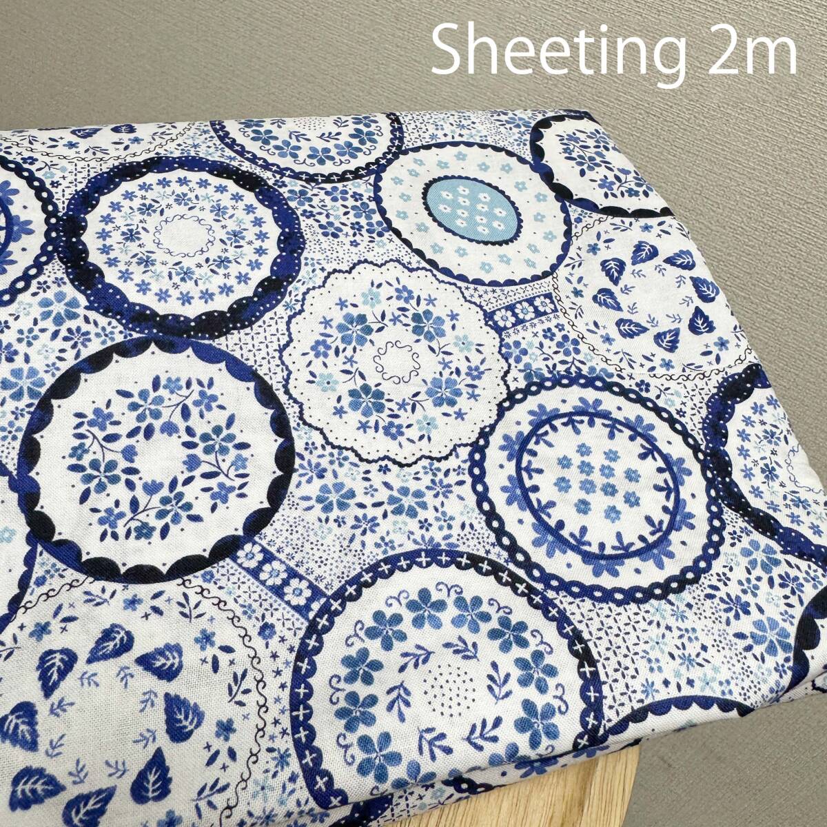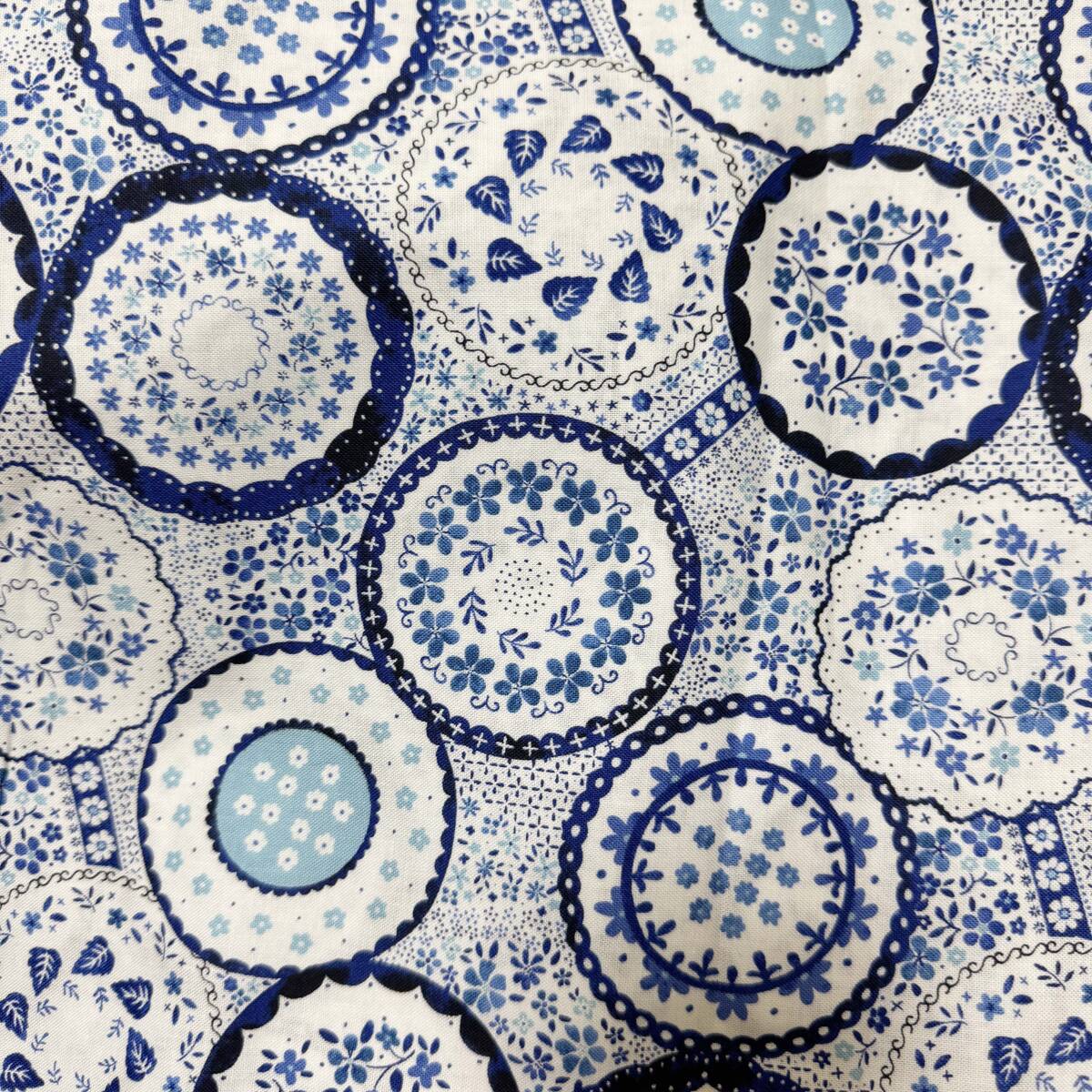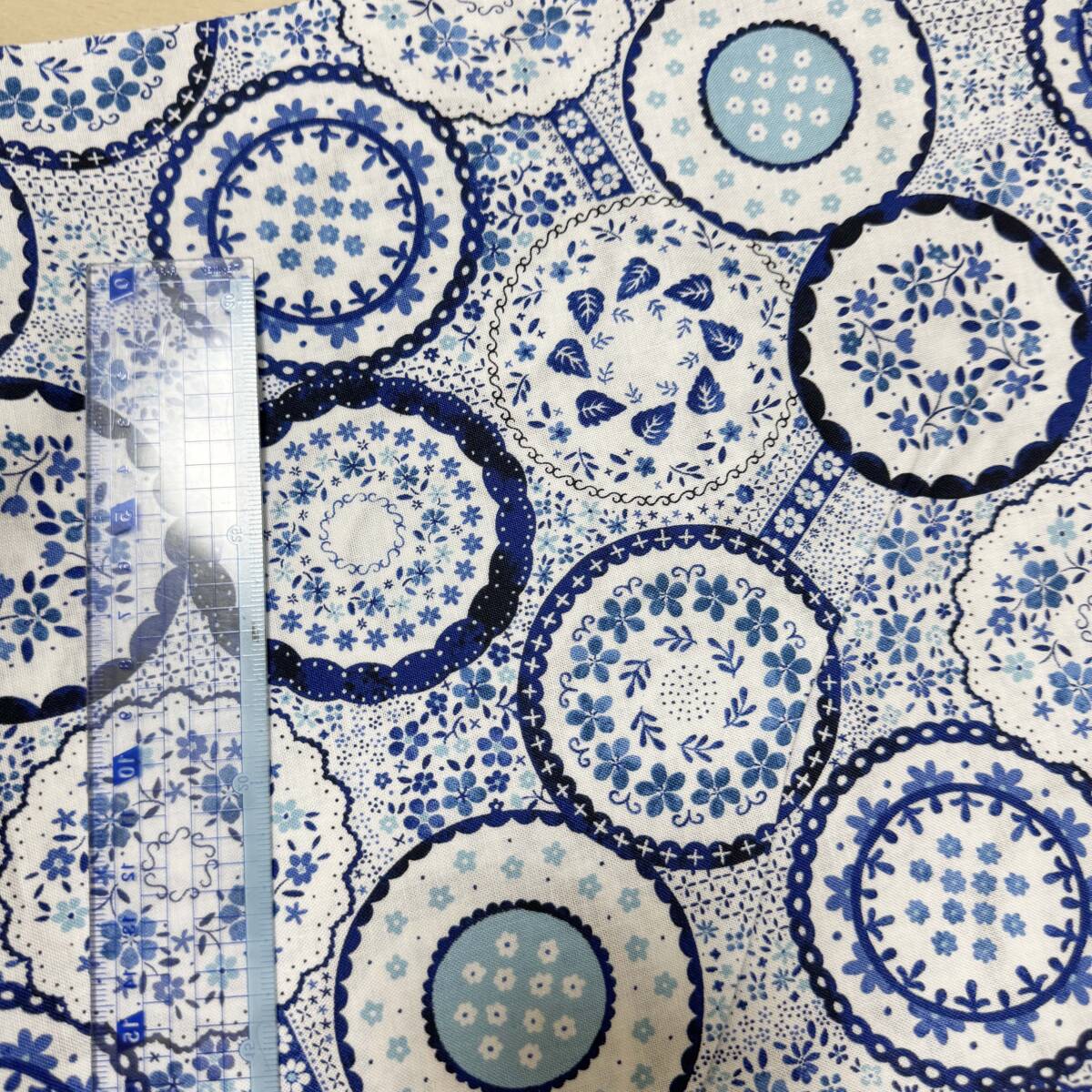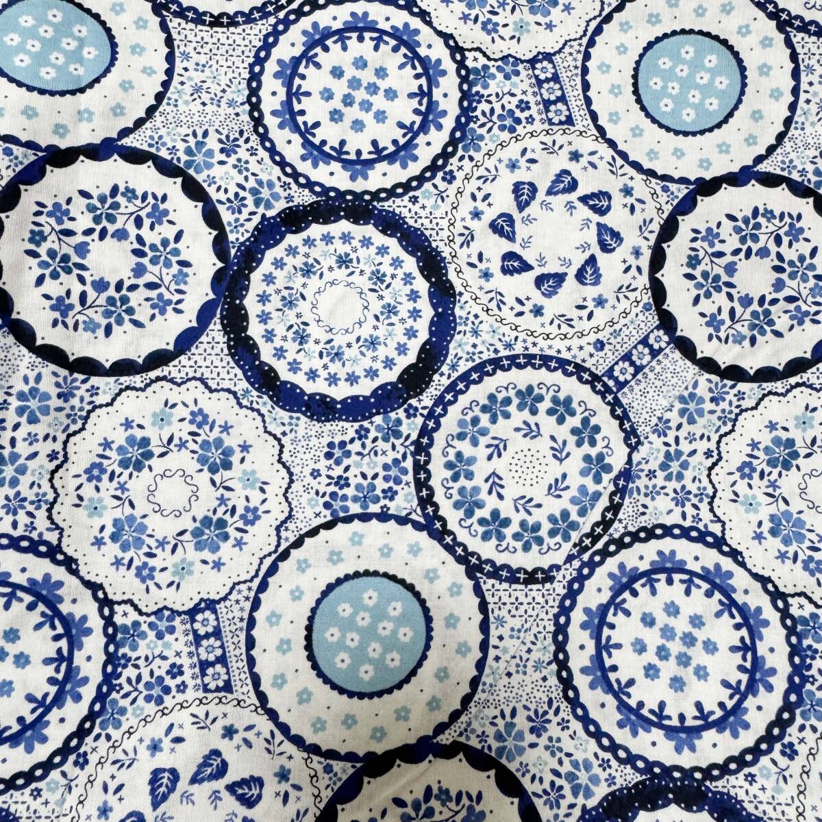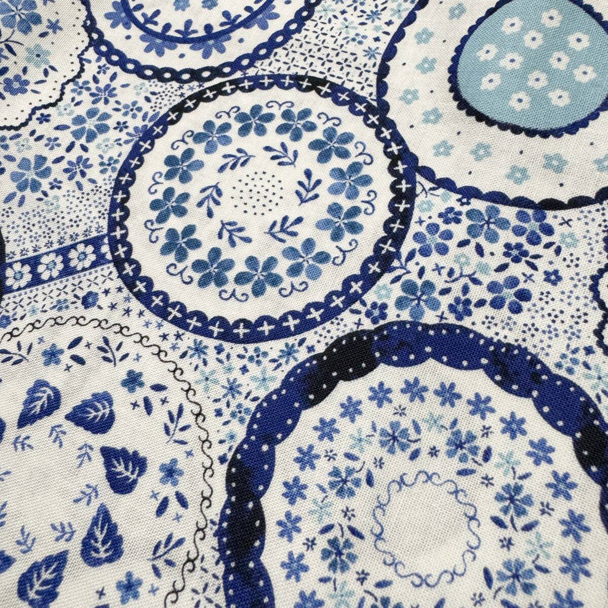 プロバンス南仏風ブルー花皿柄シーチング綿生地2mはぎれ布カットクロス