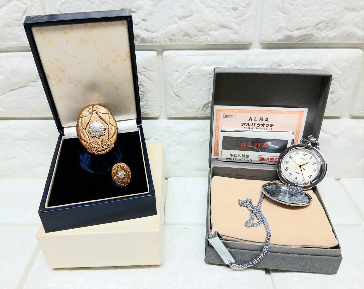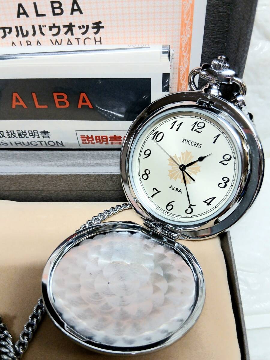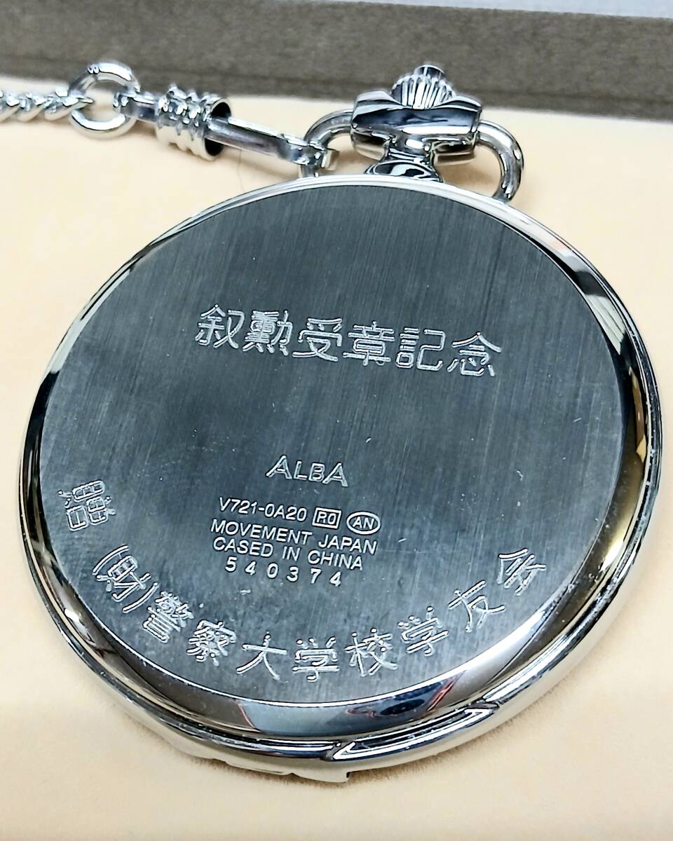 n167 警察大学校 叙勲受章記念 (SEIKO ALBA SUCCESS 懐中時計クォーツ 3針 シルバー) 警察功績章 ピンバッチ コレクション