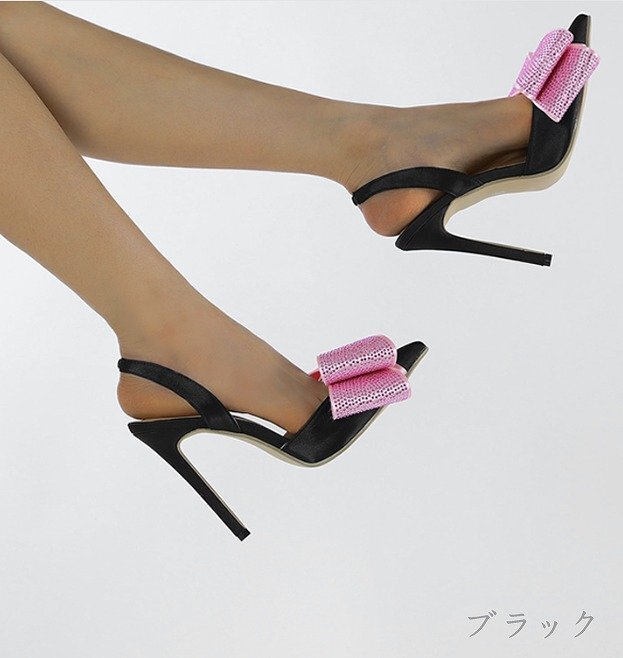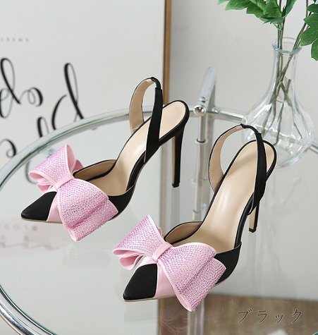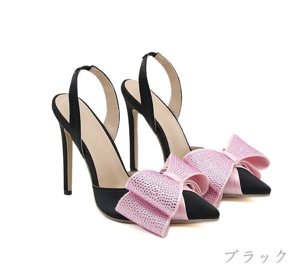 【高品質】スリッポン ローファー モカシン とんがりトゥ リボン付き sweet系 37 ブラック