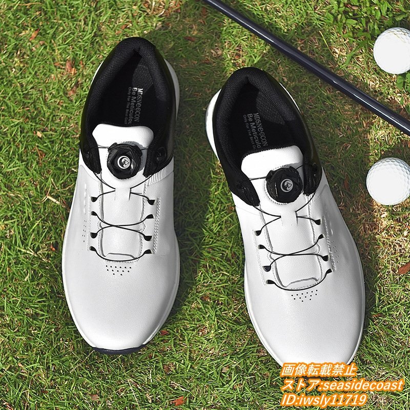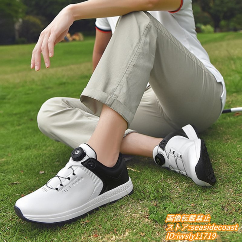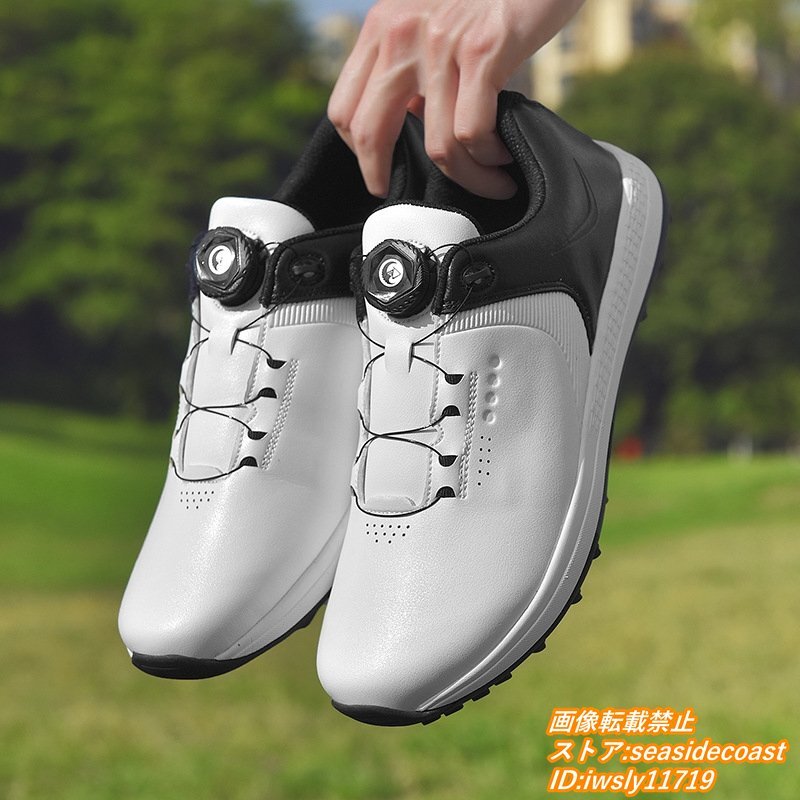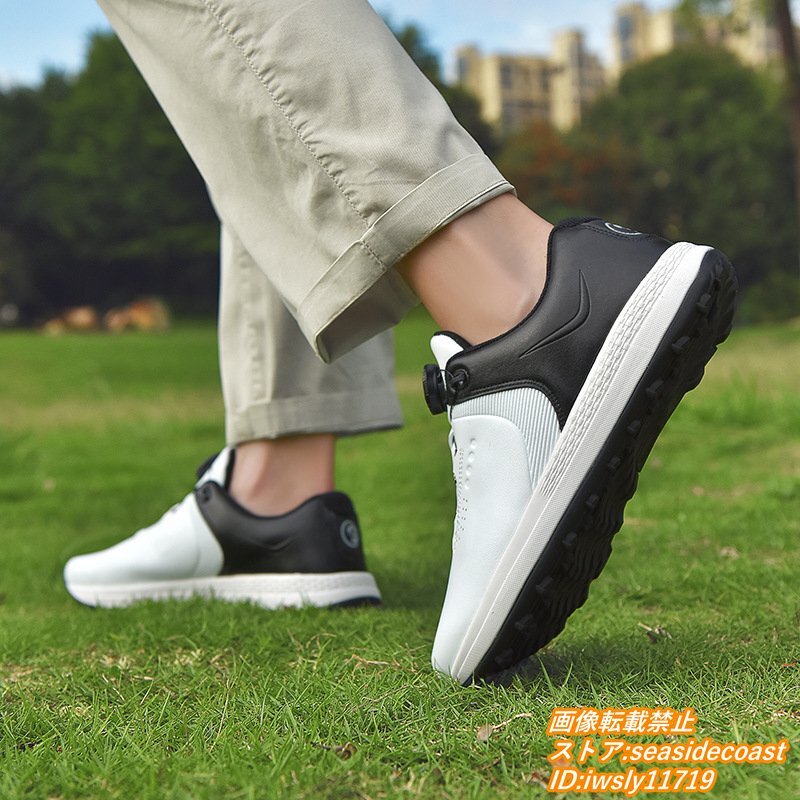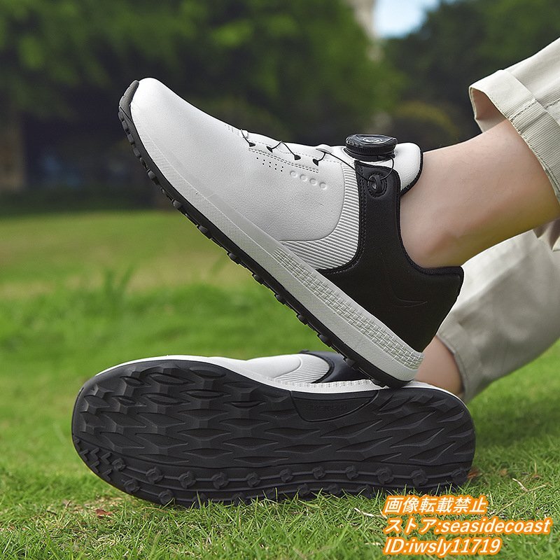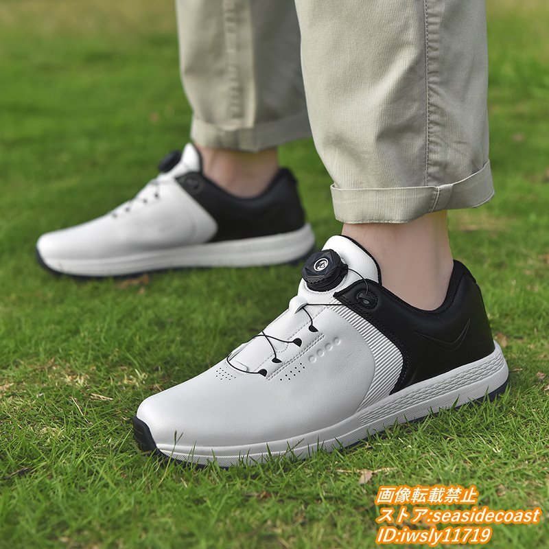 高級品 ゴルフシューズ ダイヤル式 運動靴 新品 メンズ 幅広い フィット感 軽量 スポーツシューズ 防水 防滑 耐磨 弾力性 白*黒 26.0cm