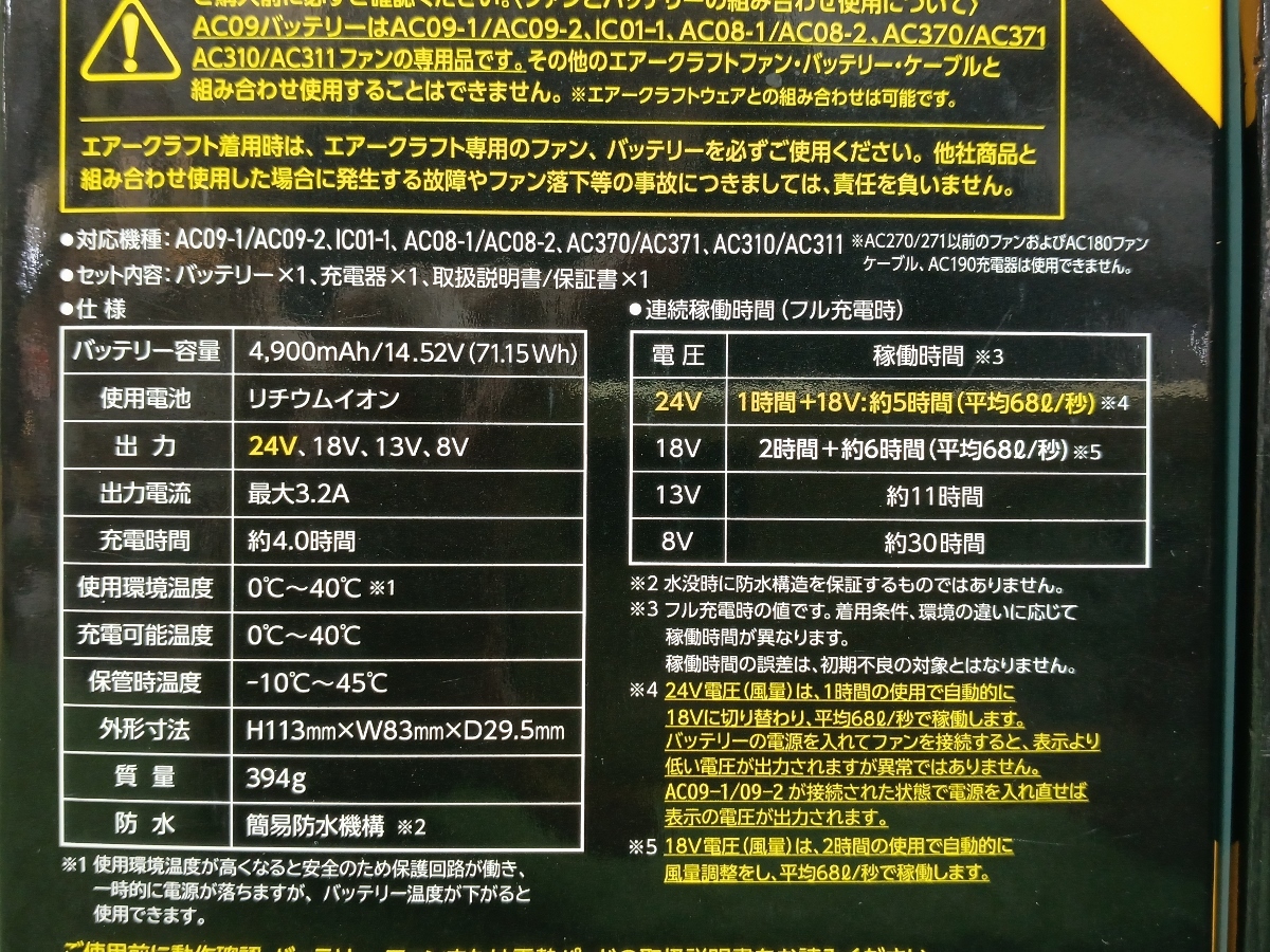 未使用 バートル エアークラフト 24V リチウムイオンバッテリー + ファンユニット セット まとめ売り 空調服 AC09 / AC09-1
