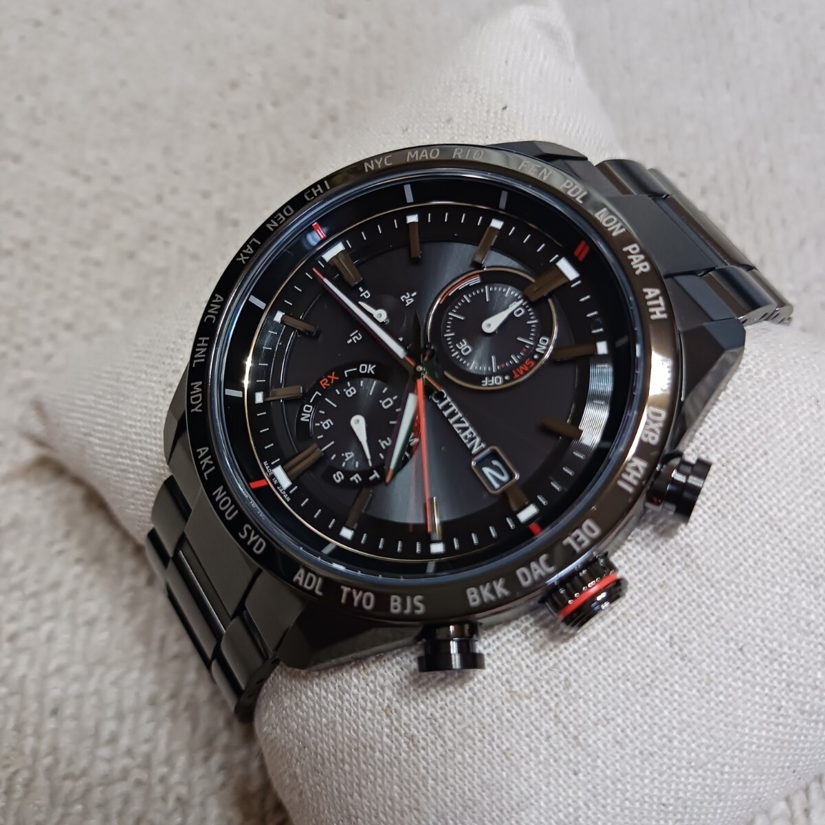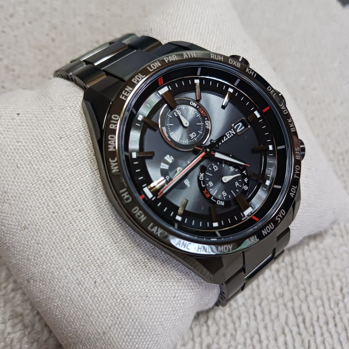美品 シチズン CITIZEN アテッサ ATTESA ACT Line エコドライブ 電波ソーラー ブラック AT8185-62E H800-T025871